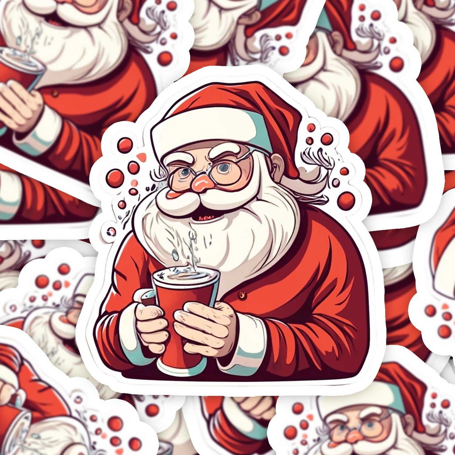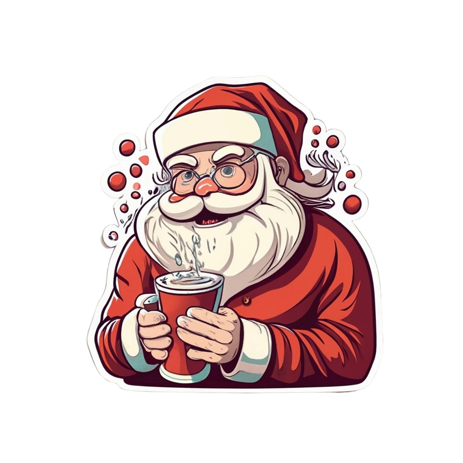 Set 5 bucati, Sticker decorativ, Mos Craciun bea ciocolata calda, Rezistent la apa, NO15258, 6 cm, Multicolor
