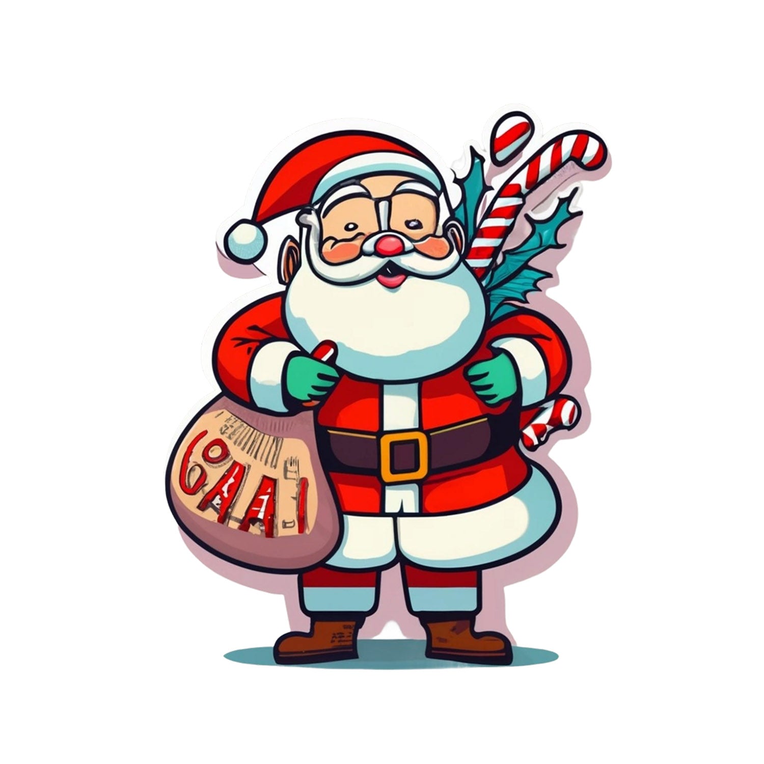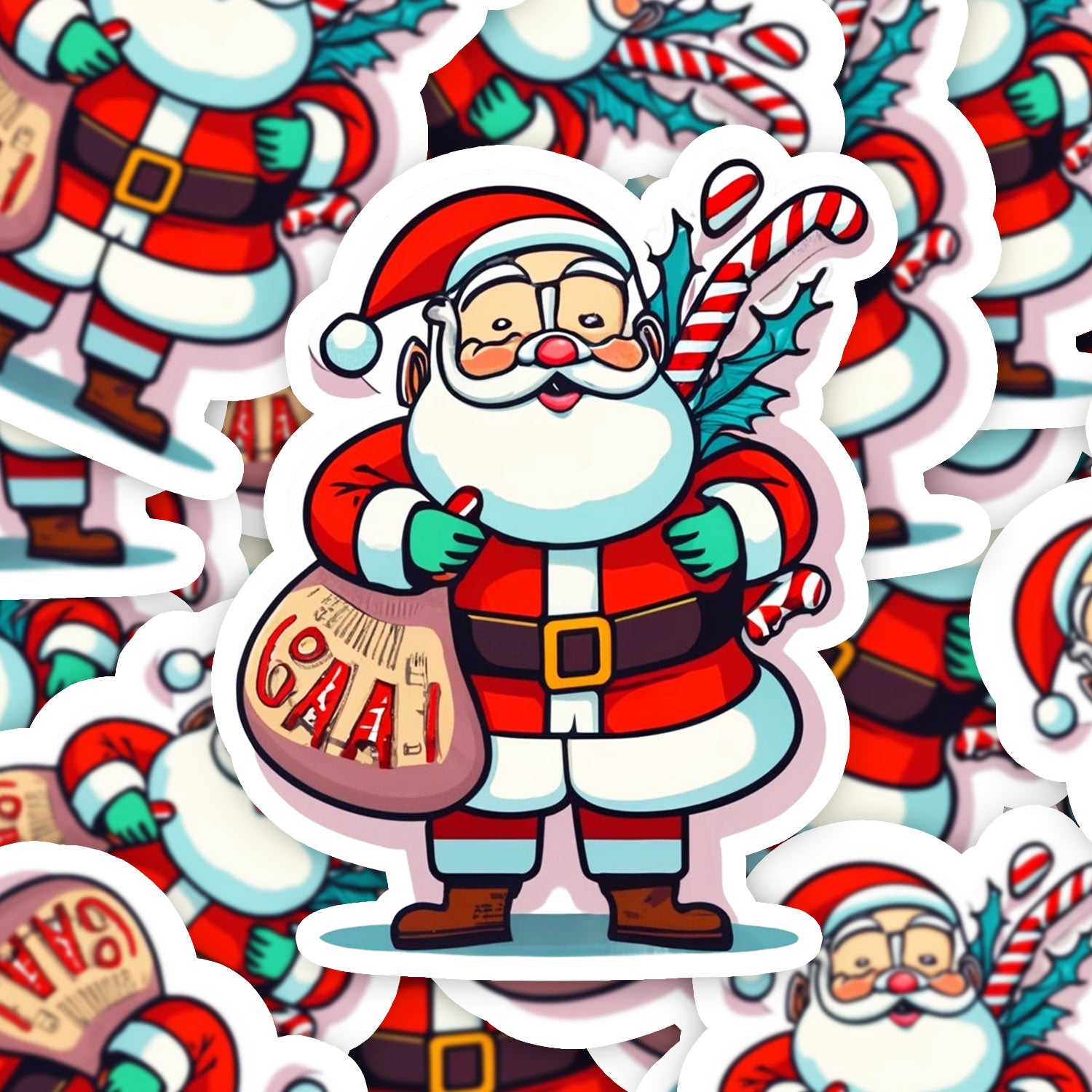 Set 5 bucati, Sticker decorativ, Mos Craciun cu acadele si cadouri, Rezistent la apa, NO15795, 6 cm, Multicolor