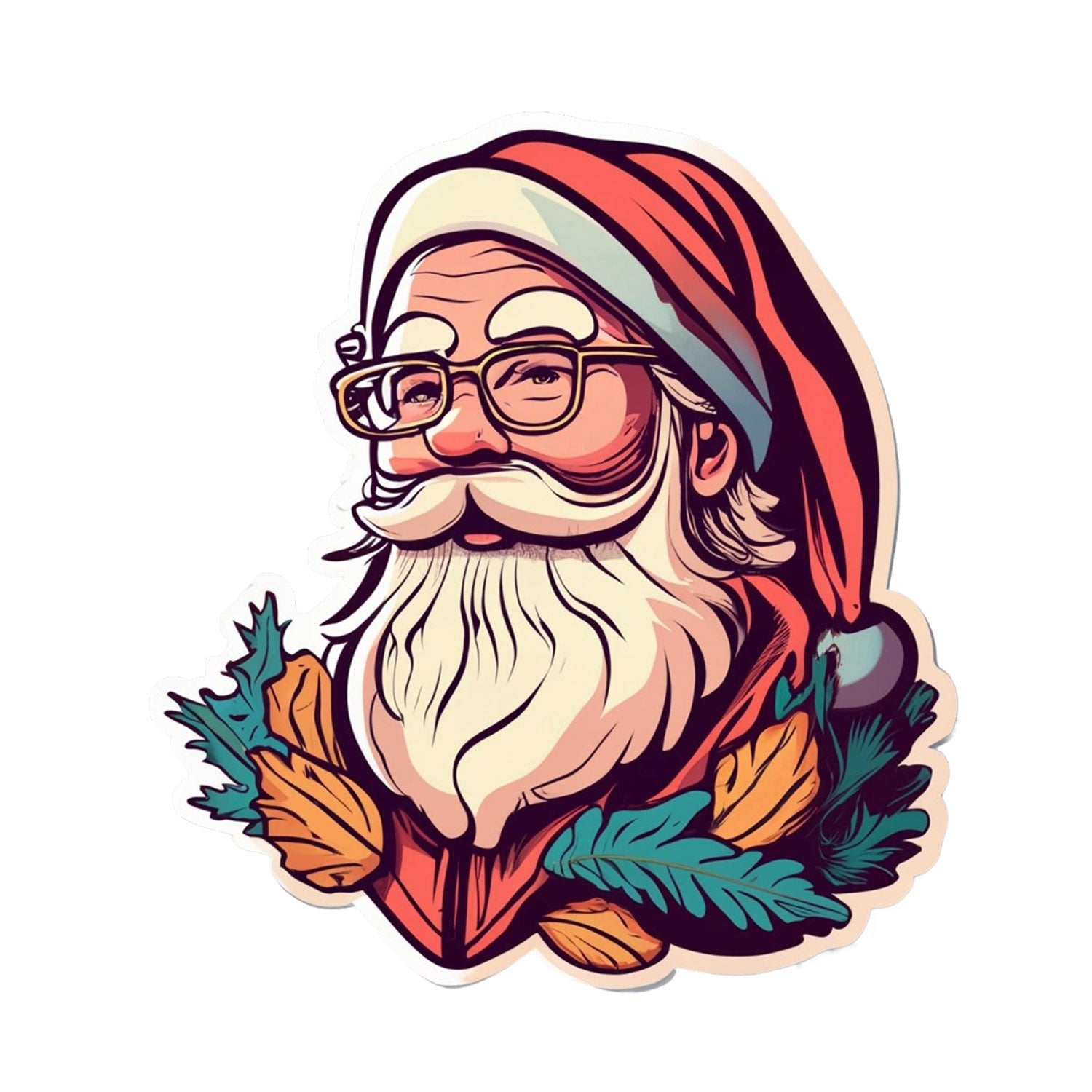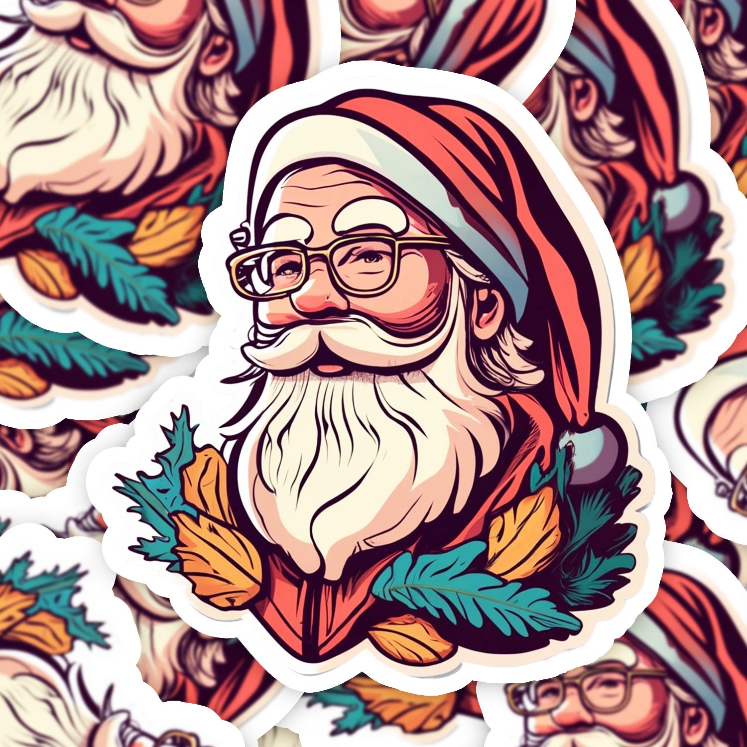 Set 5 bucati, Sticker decorativ, Mos Craciun cu barba alba, Rezistent la apa, NO14273, 6 cm, Multicolor