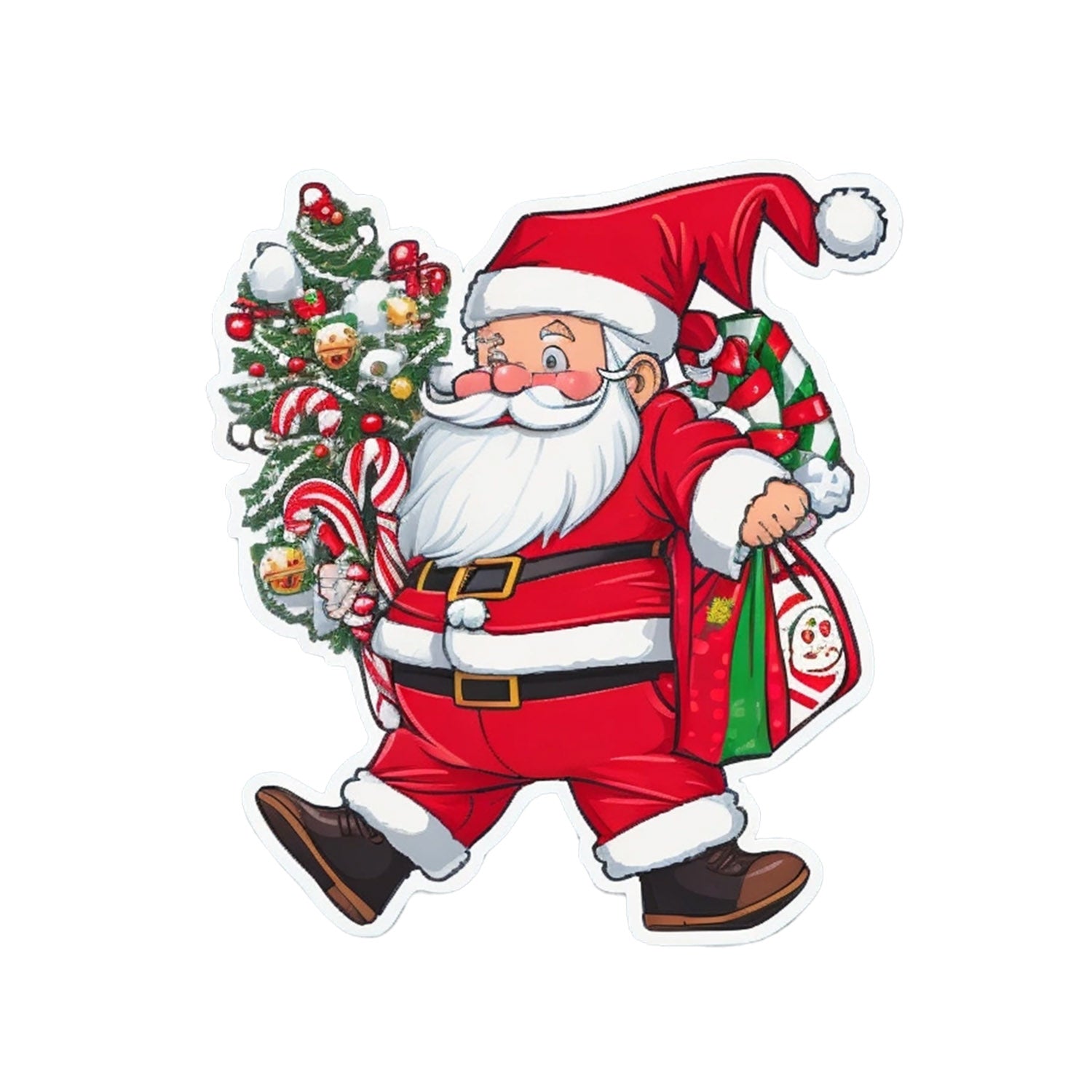 Set 5 bucati, Sticker decorativ, Mos Craciun cu bradul de craciun, Rezistent la apa, NO11514, 6 cm, Multicolor