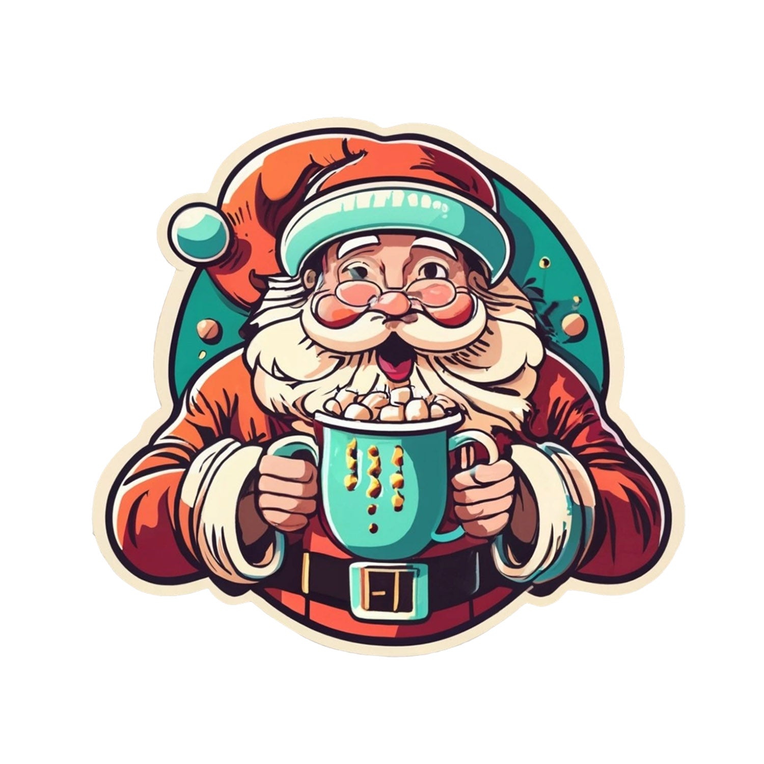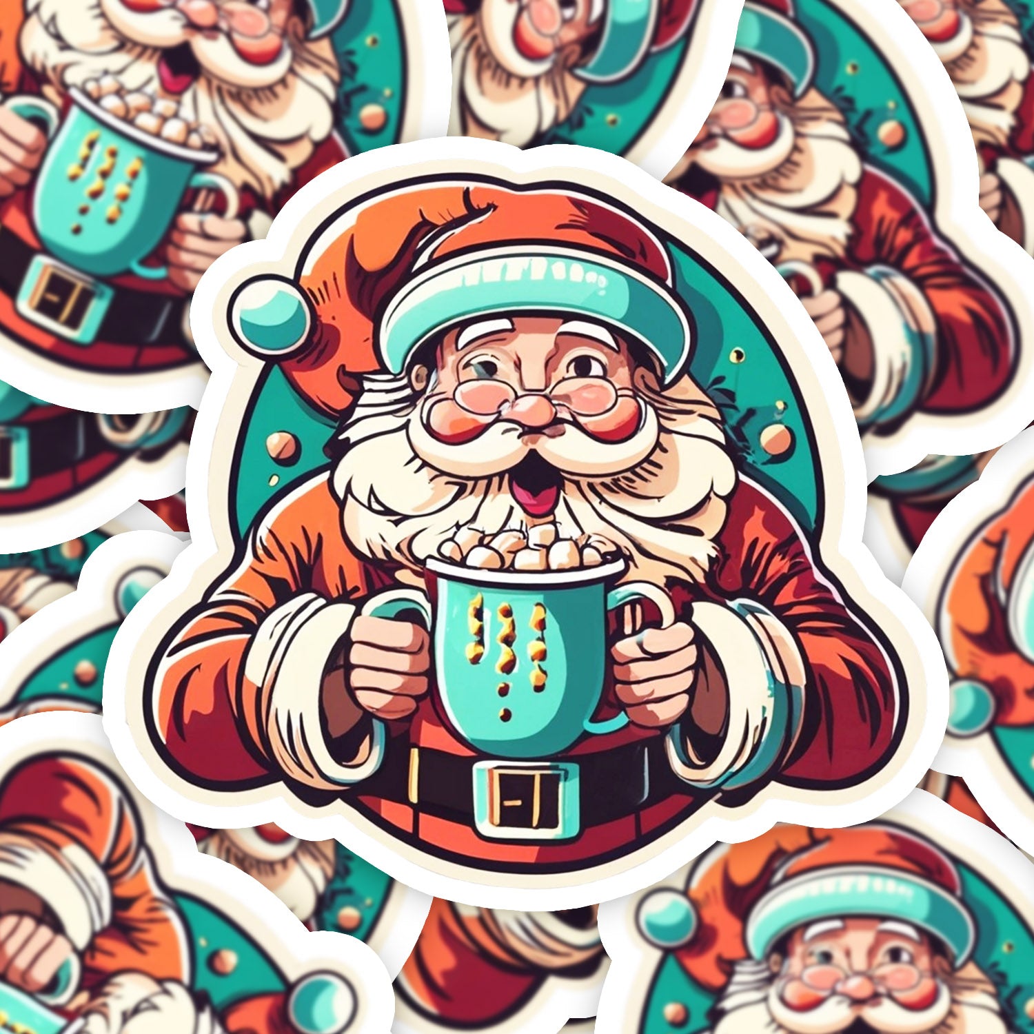 Set 5 bucati, Sticker decorativ, Mos Craciun cu cana cu bomboane, Rezistent la apa, NO14425, 6 cm, Multicolor