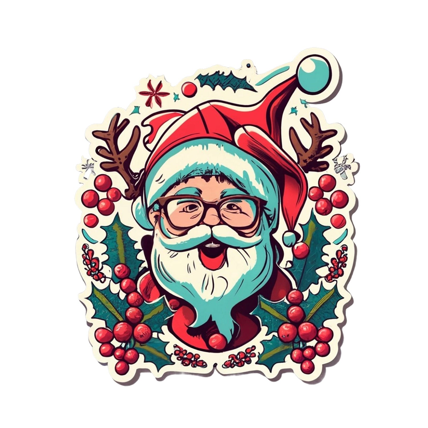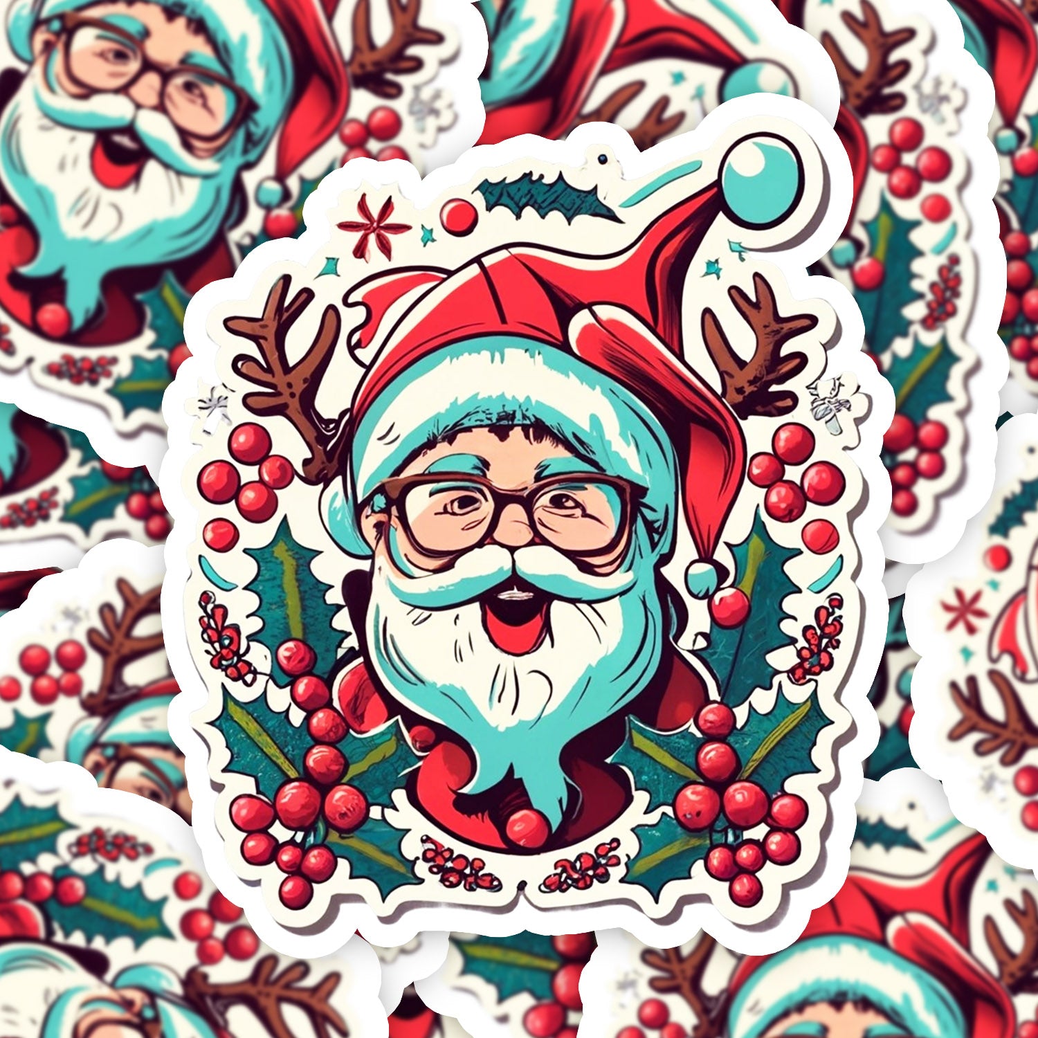 Set 5 bucati, Sticker decorativ, Mos Craciun cu coarne de ren, Rezistent la apa, NO11588, 6 cm, Multicolor