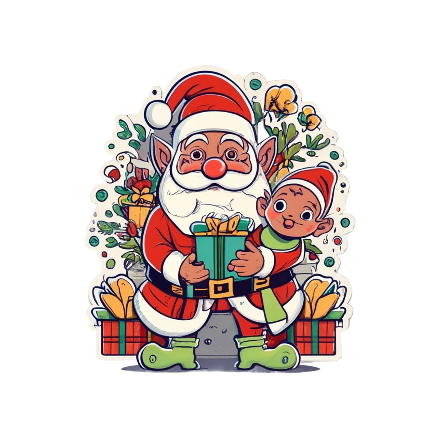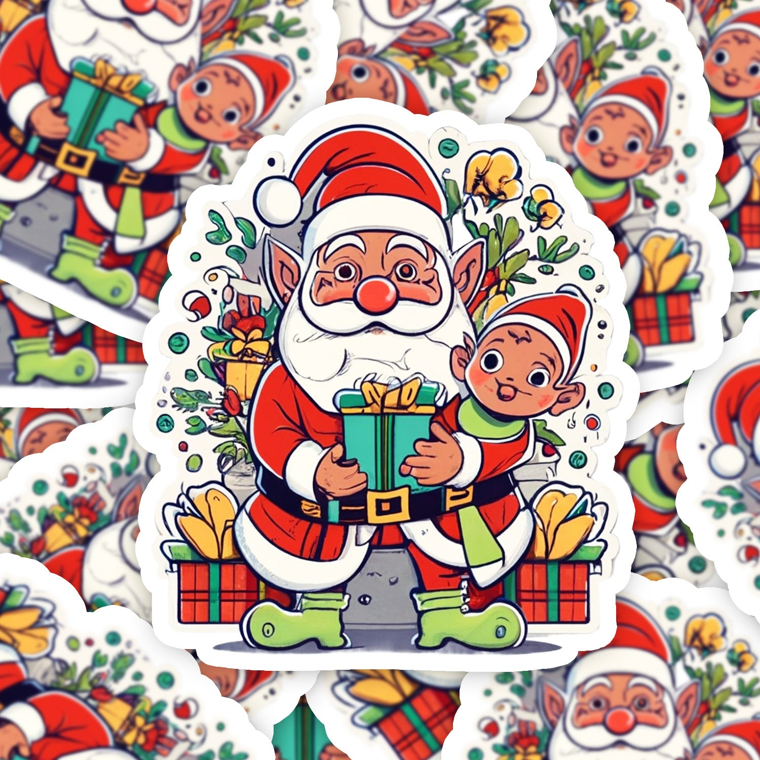 Set 5 bucati, Sticker decorativ, Mos Craciun cu copil in brate, Rezistent la apa, NO14022, 6 cm, Multicolor
