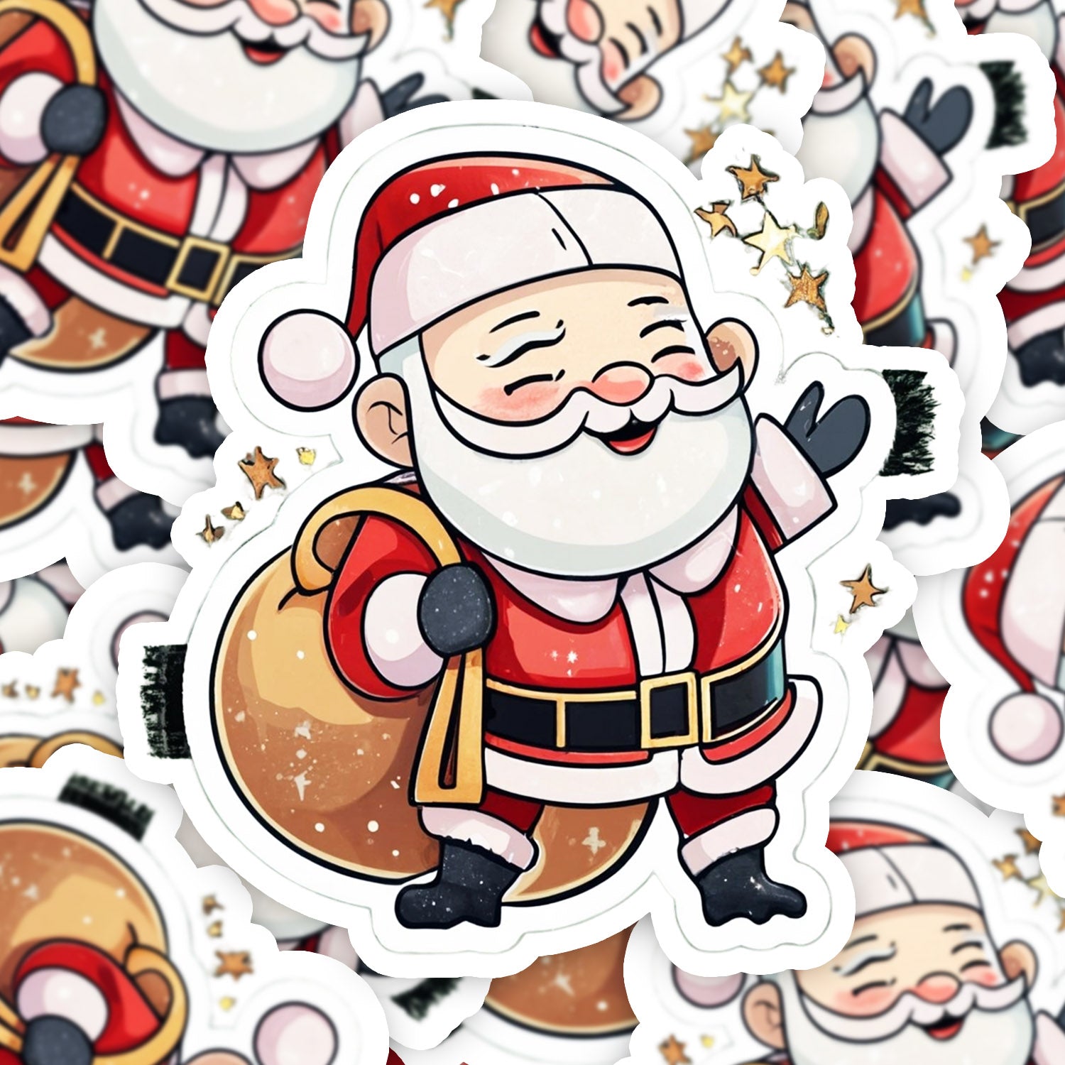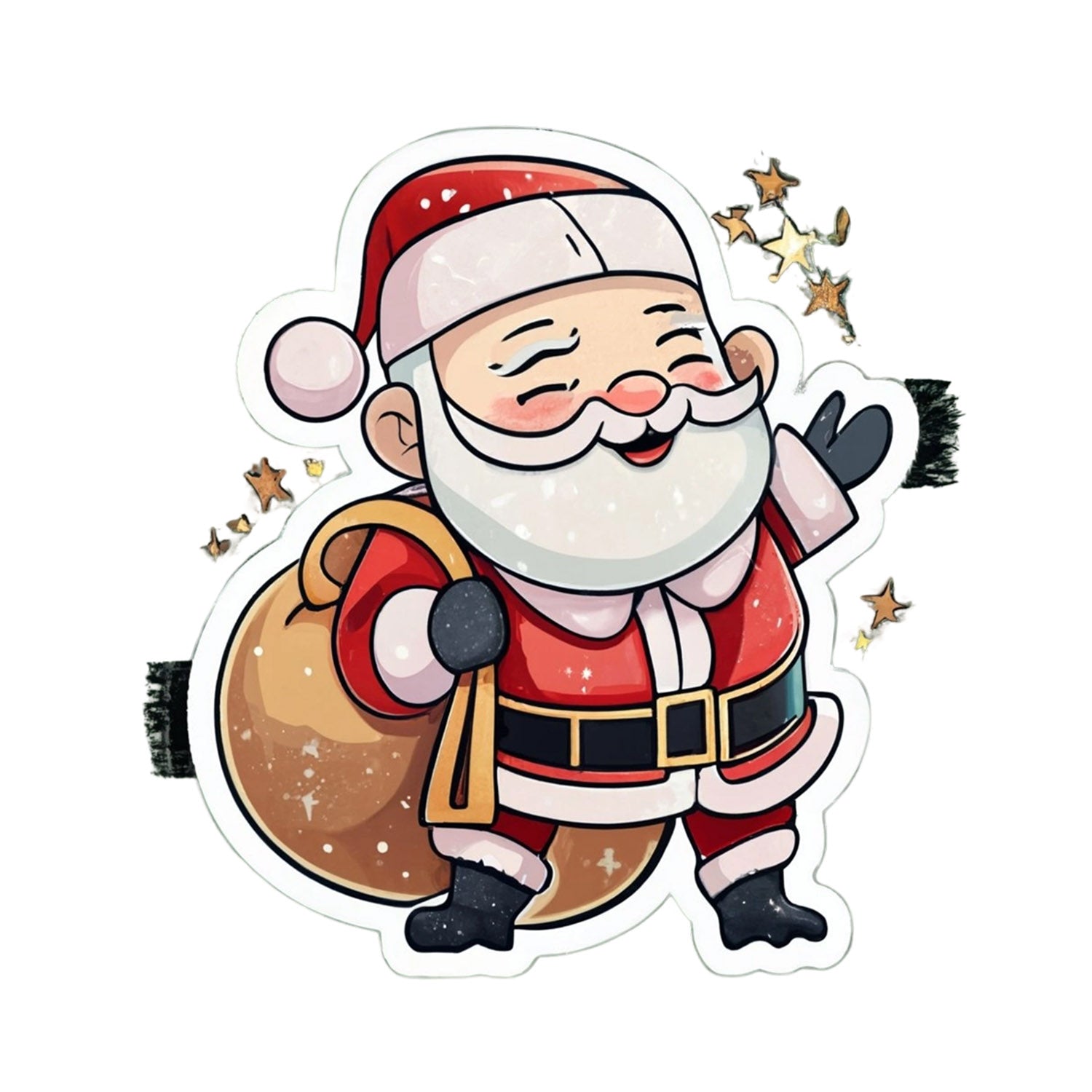 Set 5 bucati, Sticker decorativ, Mos Craciun cu sacul cu jucarii, Rezistent la apa, NO11402, 6 cm, Multicolor