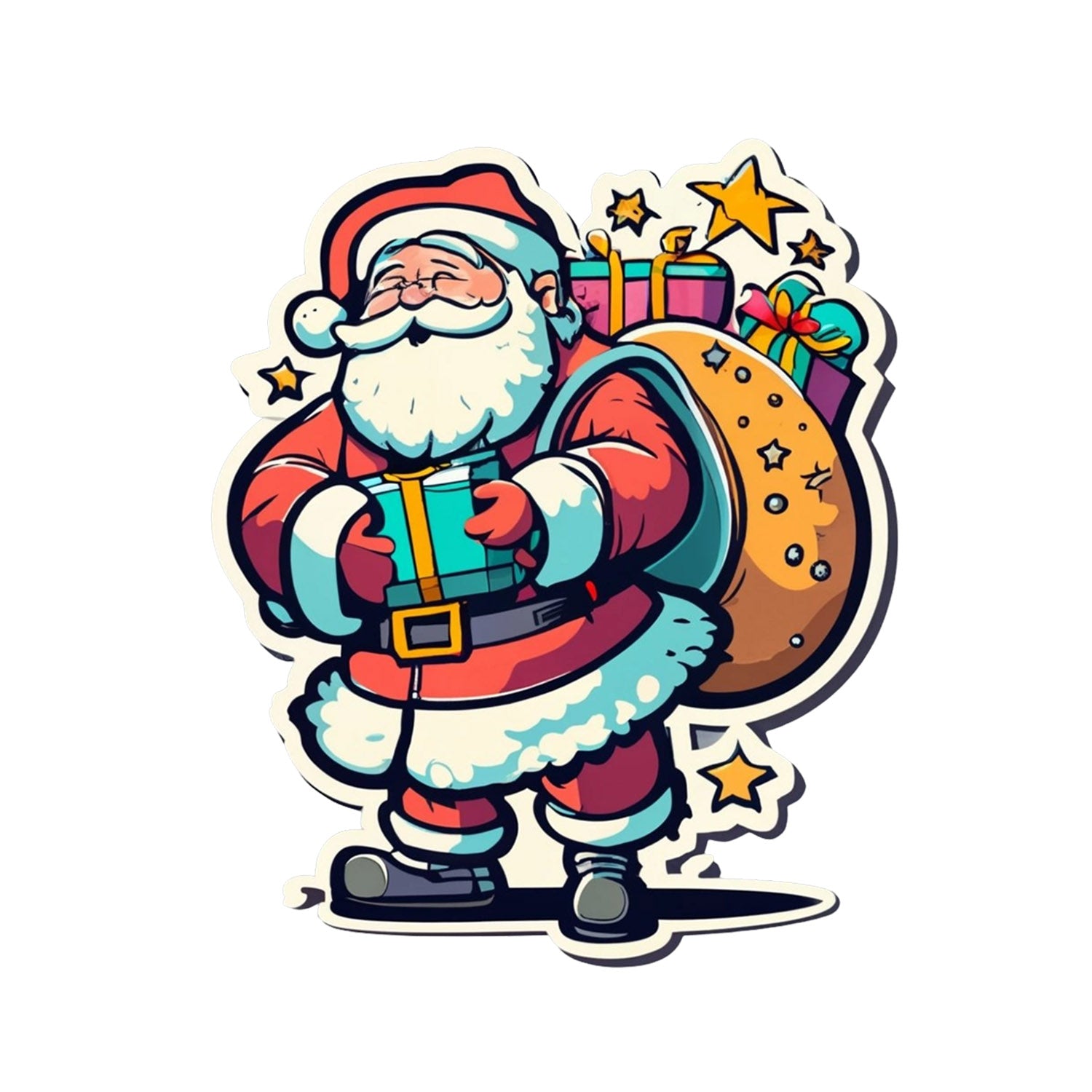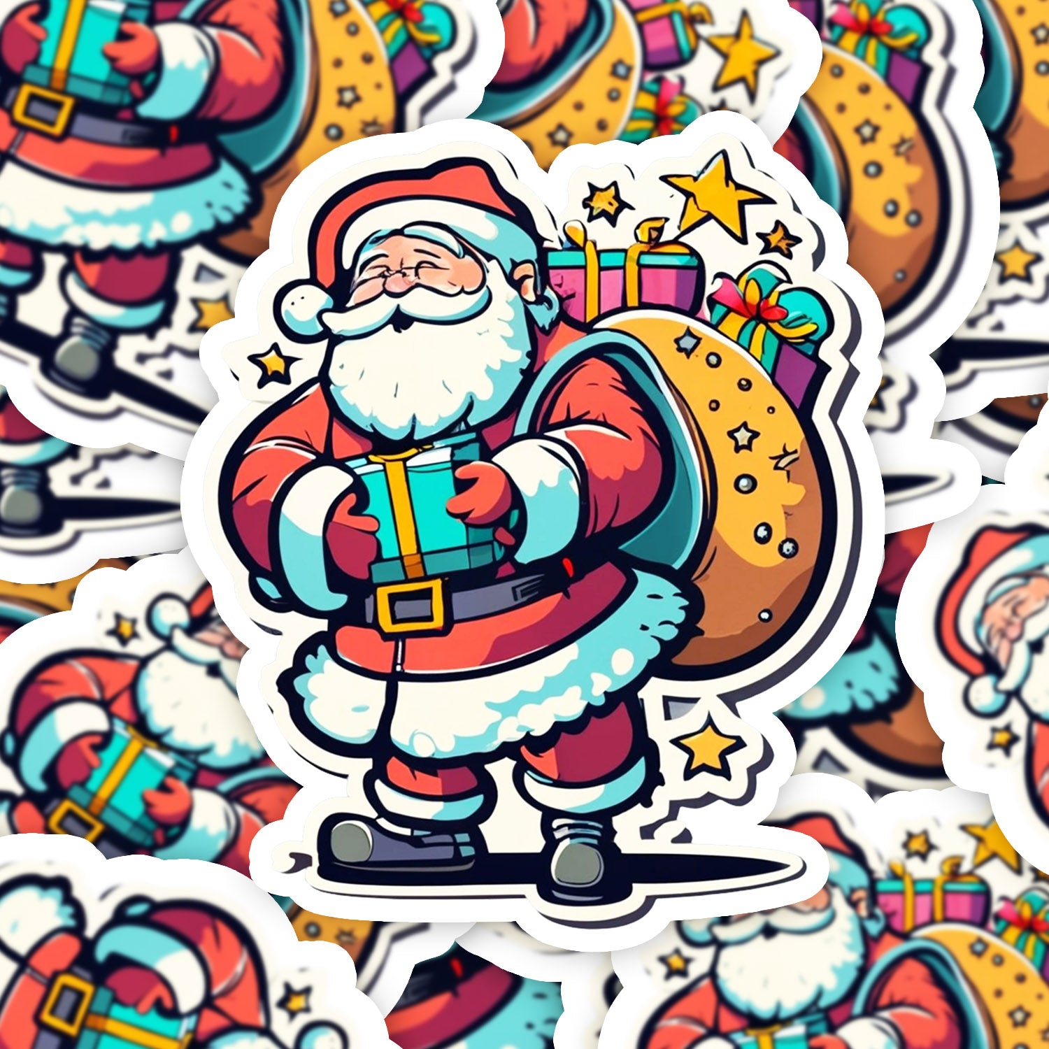 Set 5 bucati, Sticker decorativ, Mos Craciun cu sacul cu jucarii si cadou in mana, Rezistent la apa, NO16171, 6 cm, Multicolor