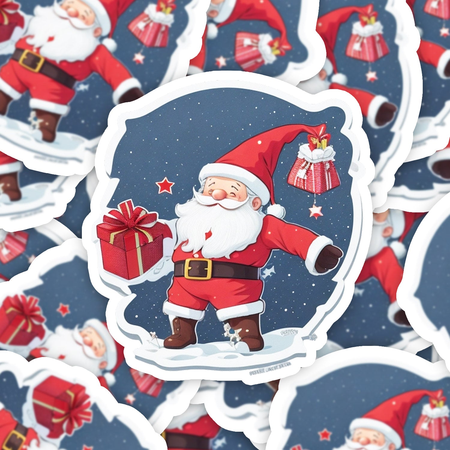 Set 5 bucati, Sticker decorativ, Mos Craciun in nameti, Rezistent la apa, NO11243, 6 cm, Multicolor