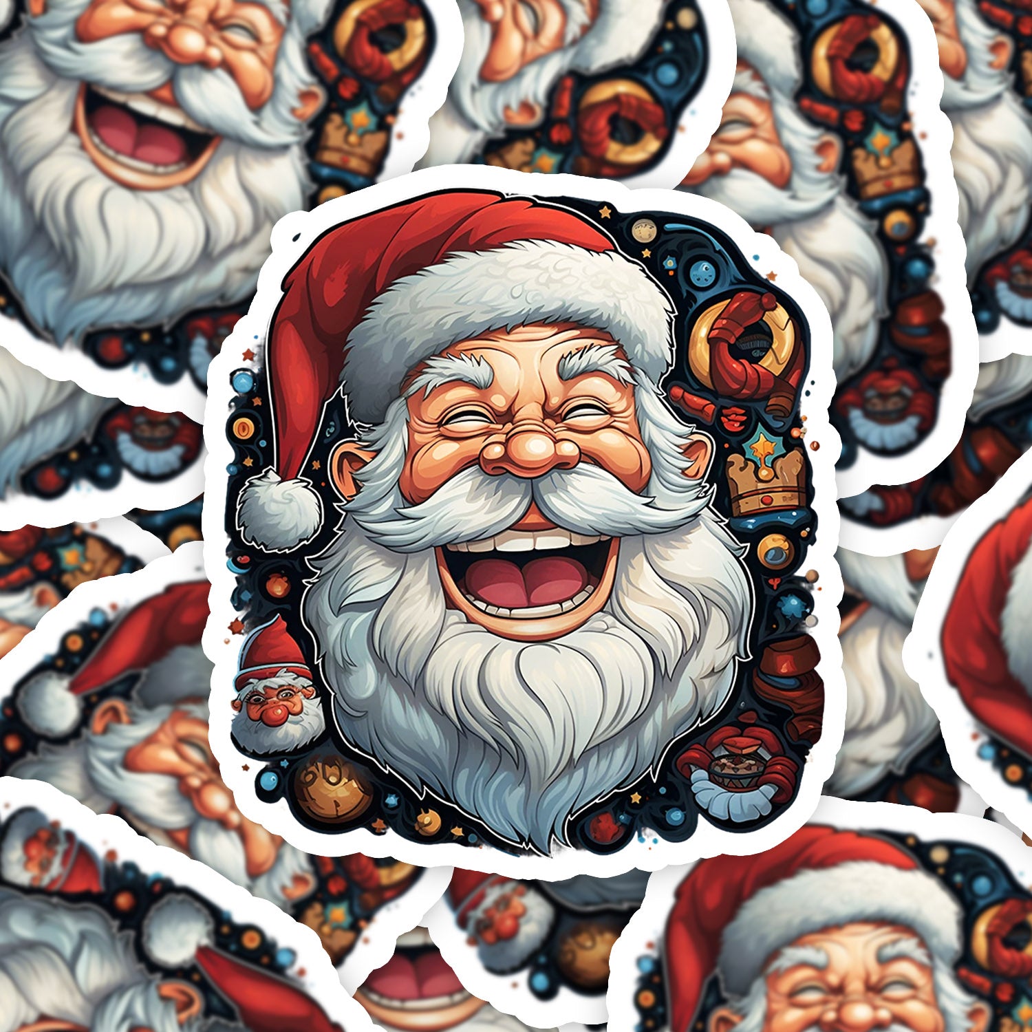 Set 5 bucati, Sticker decorativ, Mos Craciun rade in hohote, Rezistent la apa, NO10351, 6 cm, Multicolor