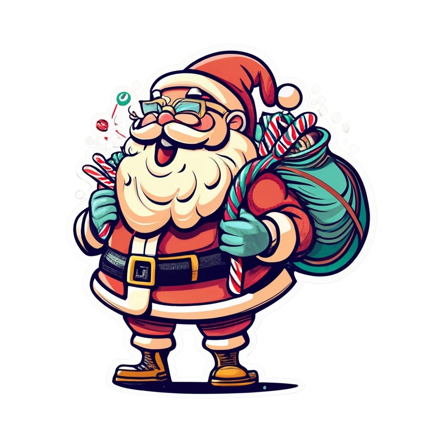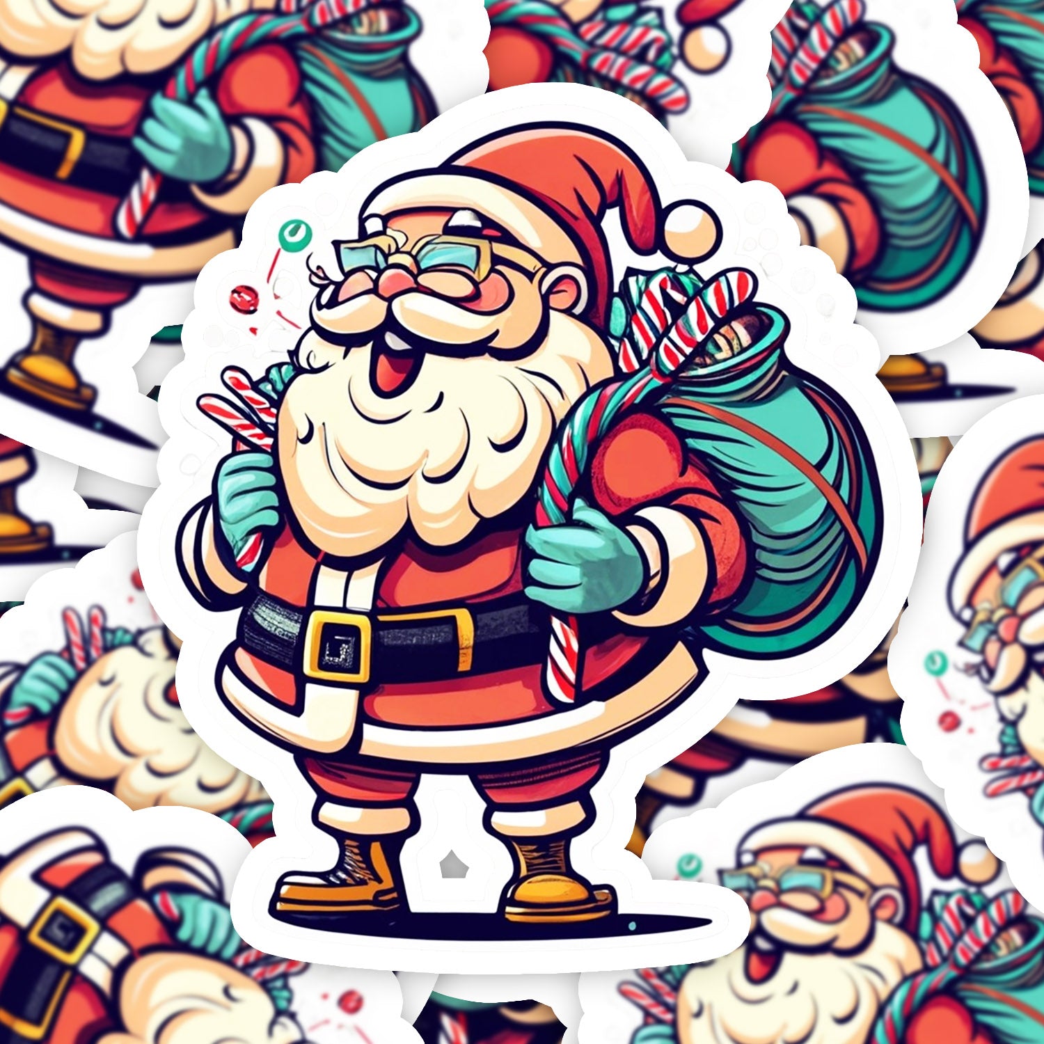 Set 5 bucati, Sticker decorativ, Mos Craciun razand, Rezistent la apa, NO13493, 6 cm, Multicolor