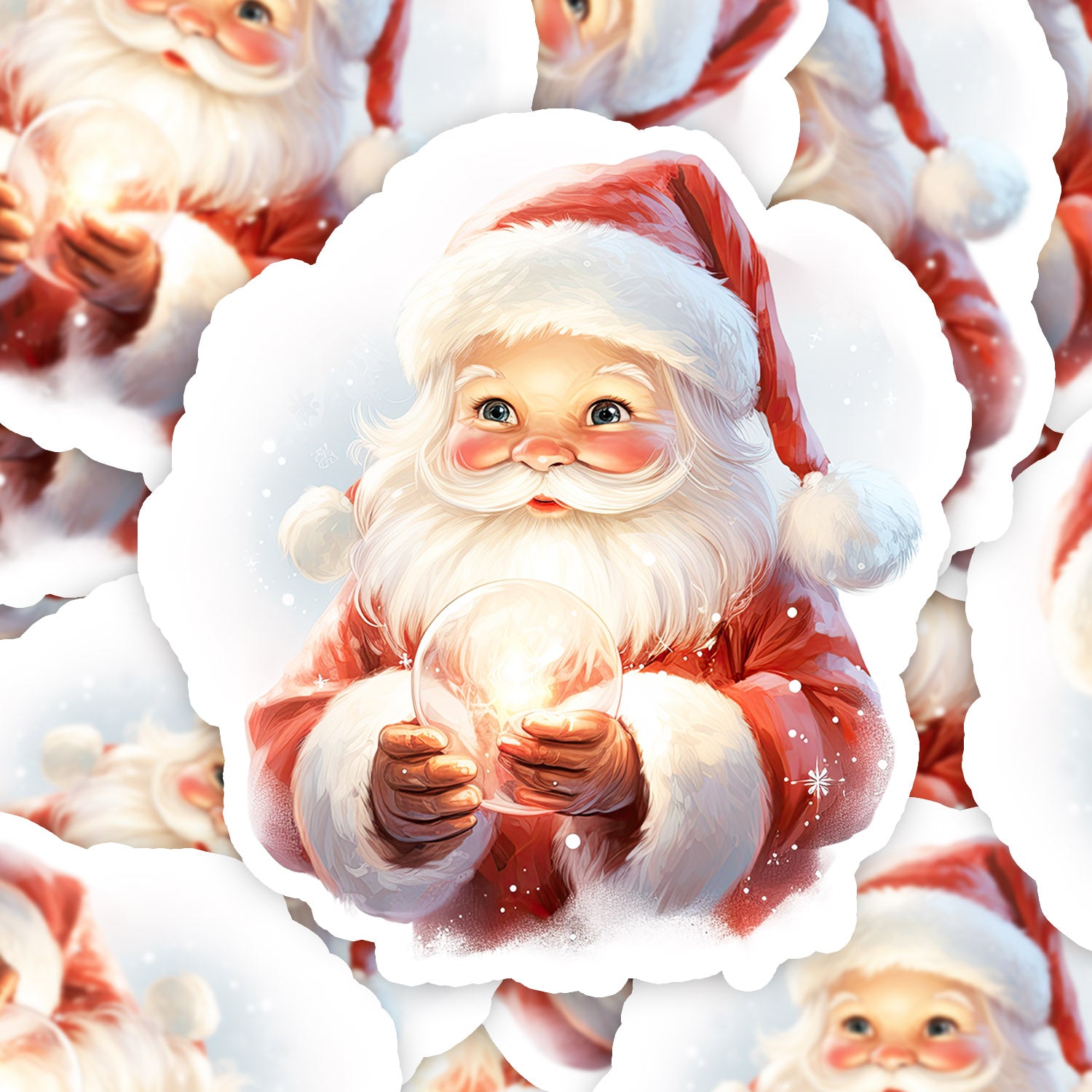 Set 5 bucati, Sticker decorativ, Mos Craciun si globul luminos, Rezistent la apa, NO13521, 6 cm, Multicolor
