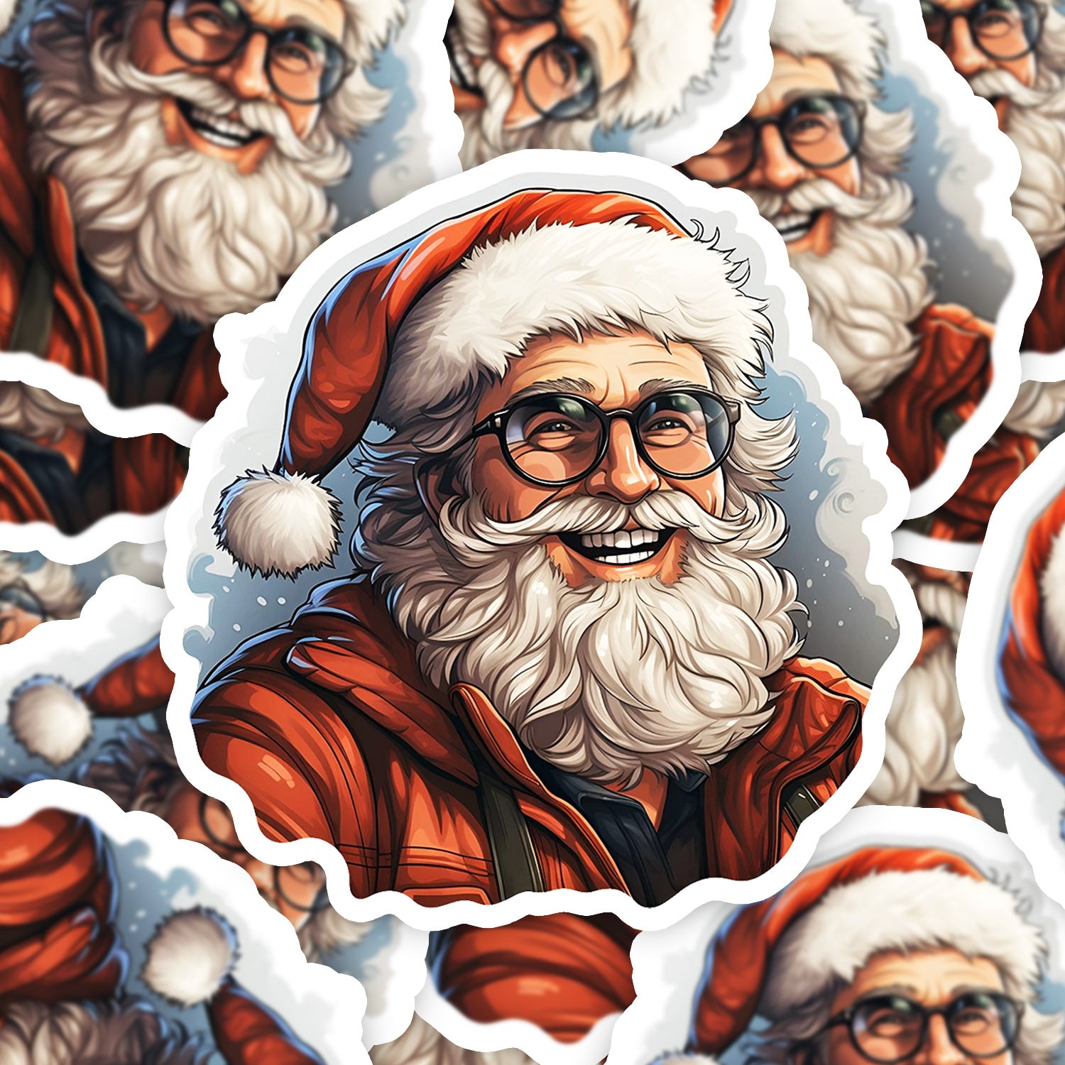 Set 5 bucati, Sticker decorativ, Mos Craciun zambeste fericit, Rezistent la apa, NO15722, 6 cm, Multicolor