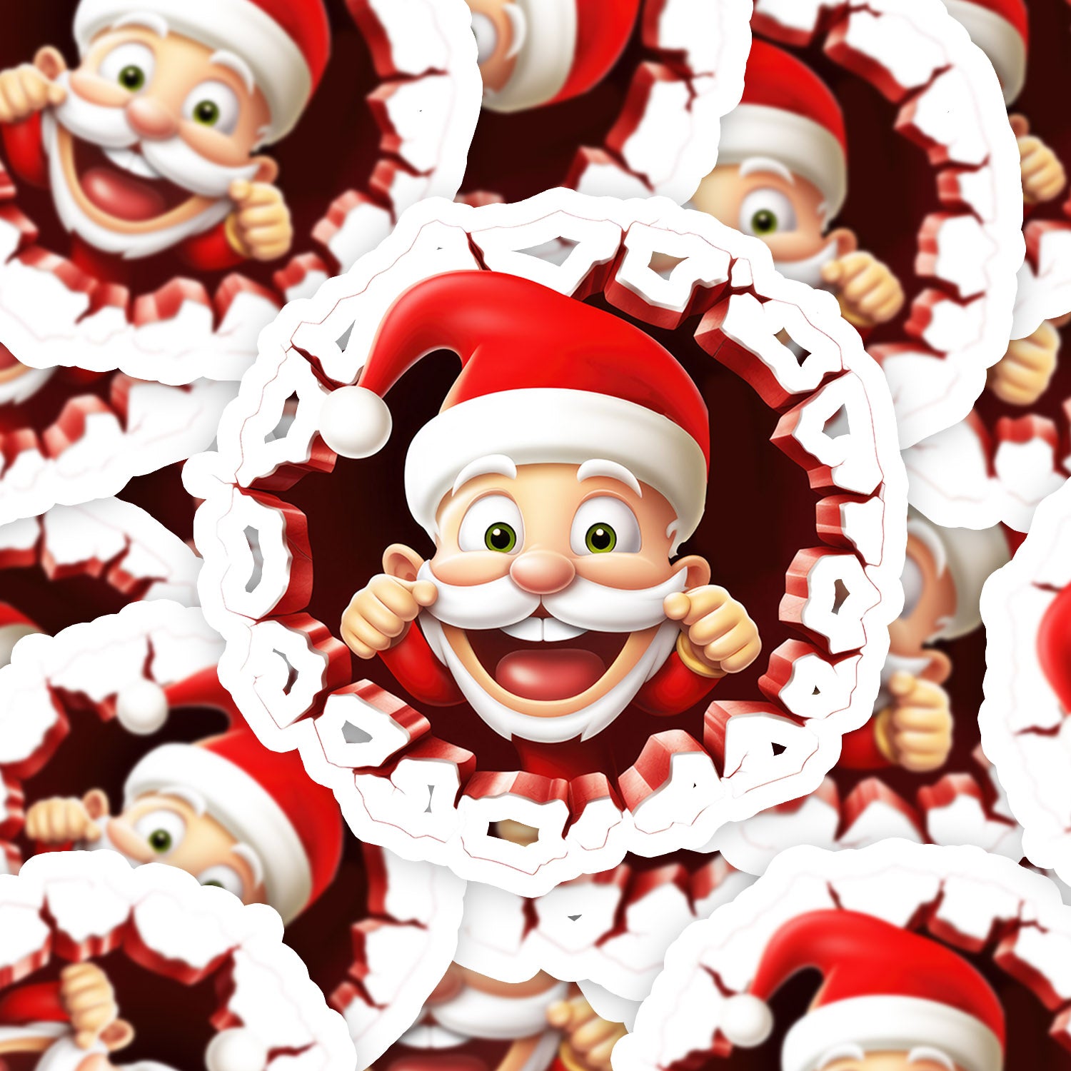Set 5 bucati, Sticker decorativ, Mos Craciun zurliu, Rezistent la apa, NO16121, 6 cm, Multicolor