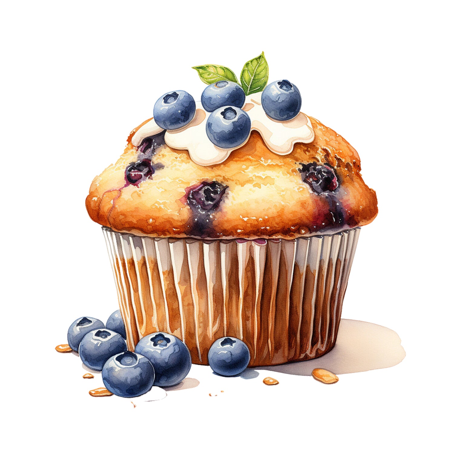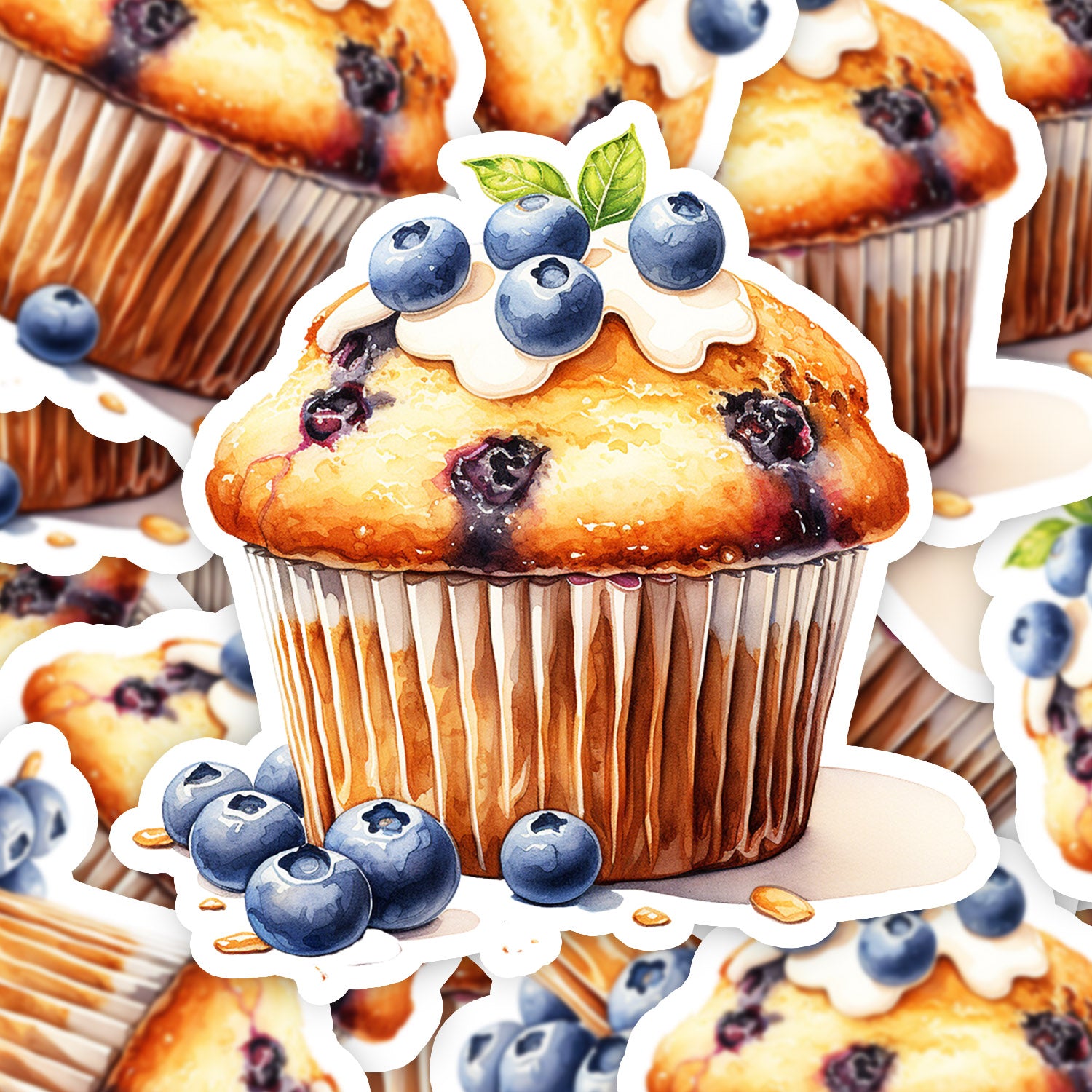Set 5 bucati, Sticker decorativ, Muffin cu afine, Rezistent la apa, NO10236, 6 cm, Multicolor
