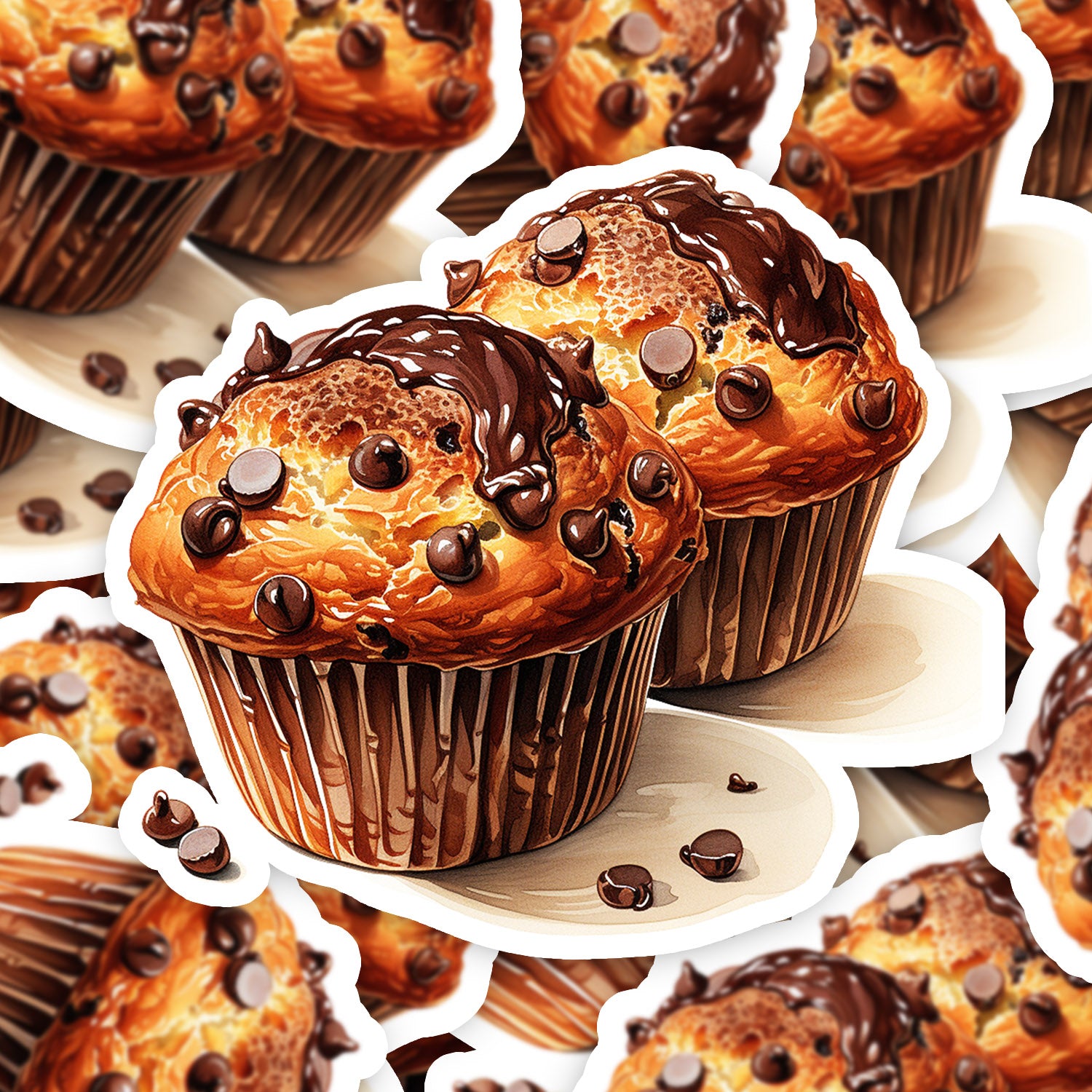 Set 5 bucati, Sticker decorativ, Muffin cu ciocolata, Rezistent la apa, NO13291, 6 cm, Multicolor
