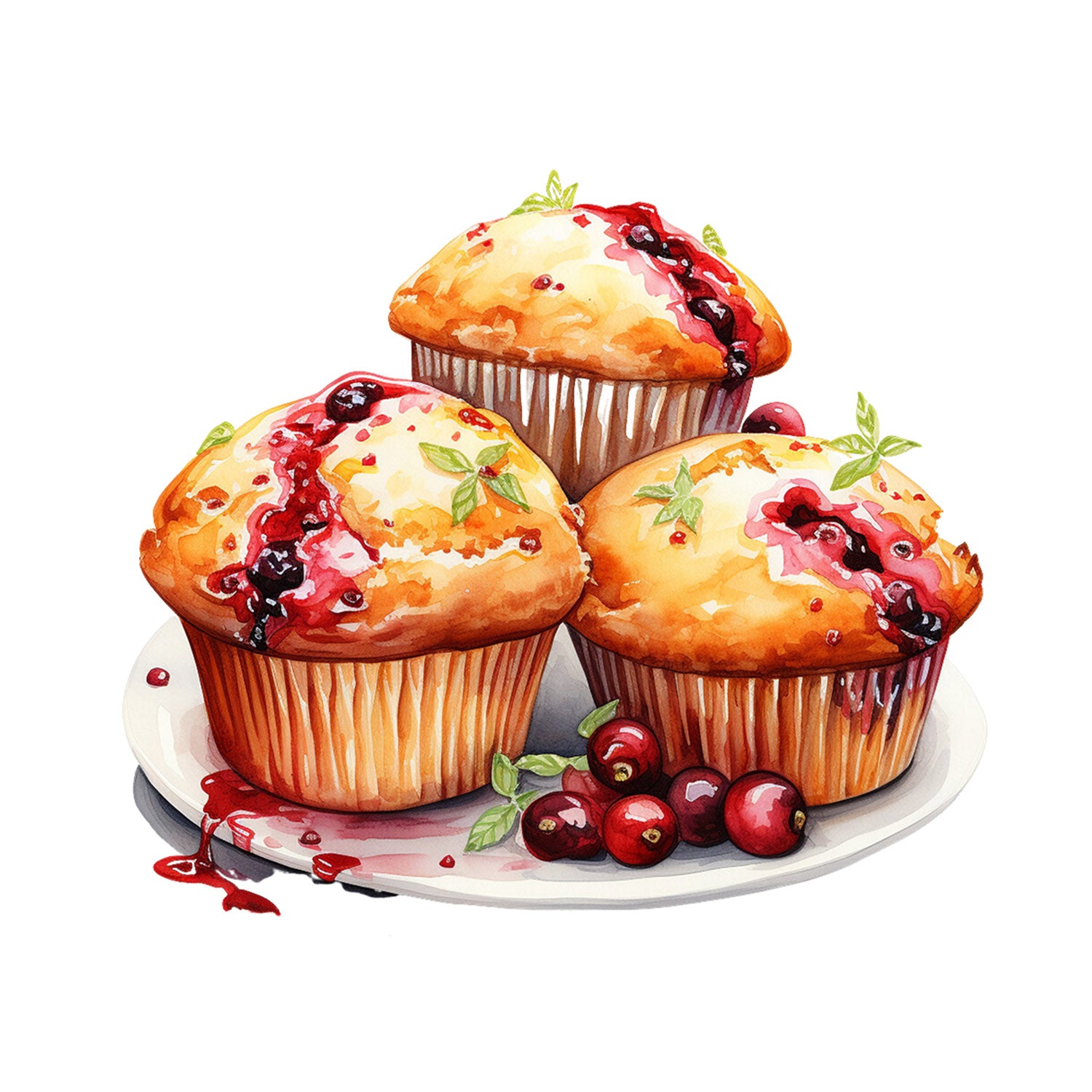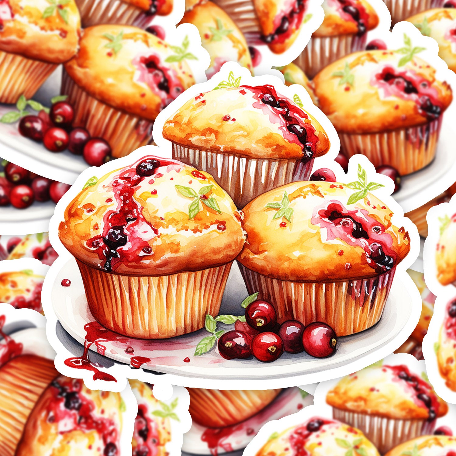 Set 5 bucati, Sticker decorativ, Muffin cu fructe de padure, Rezistent la apa, NO12365, 6 cm, Multicolor