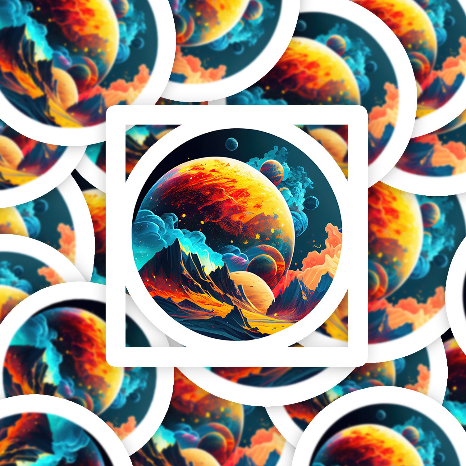 Set 5 bucati, Sticker decorativ, Muntele si universul (2), Rezistent la apa, NO16441, 6 cm, Multicolor