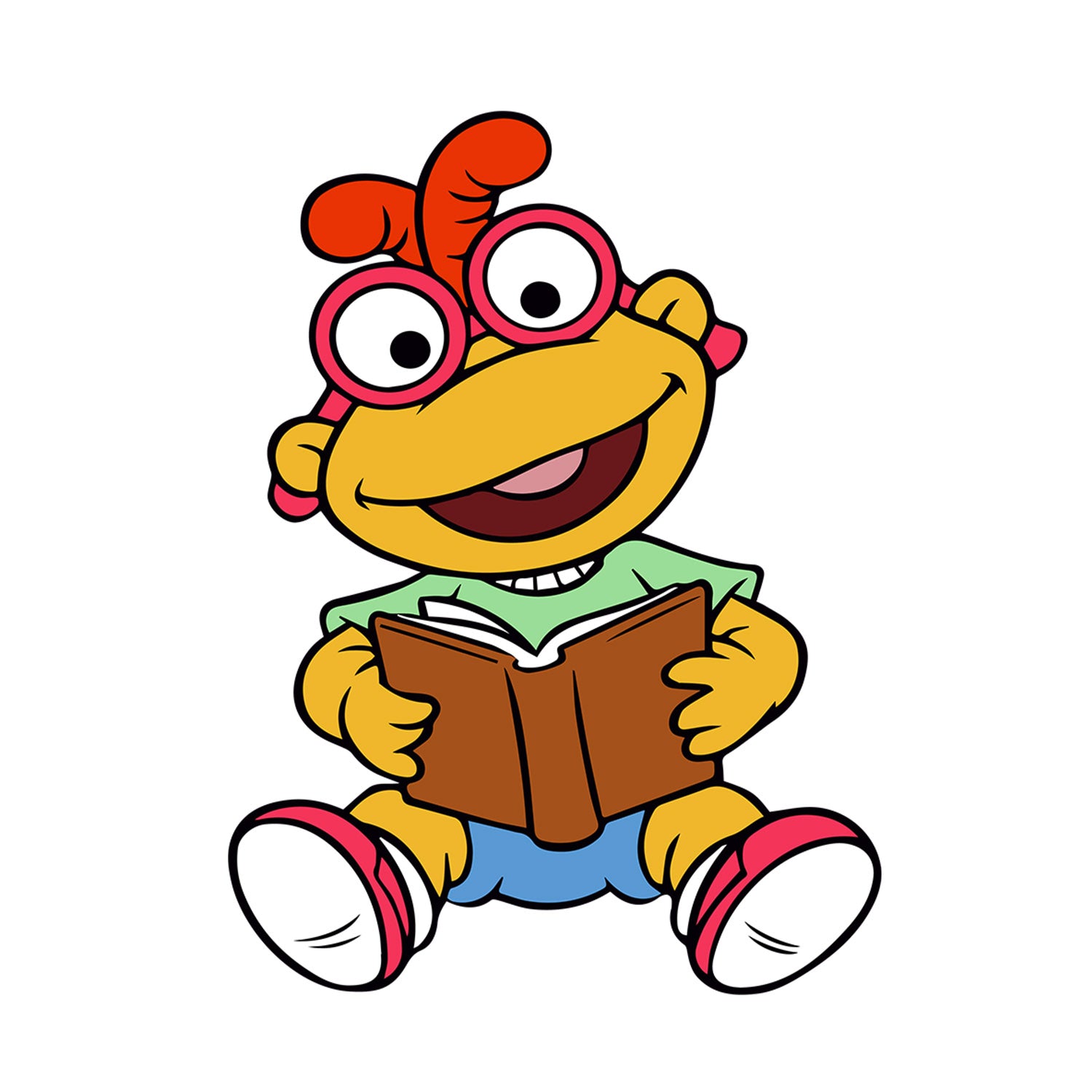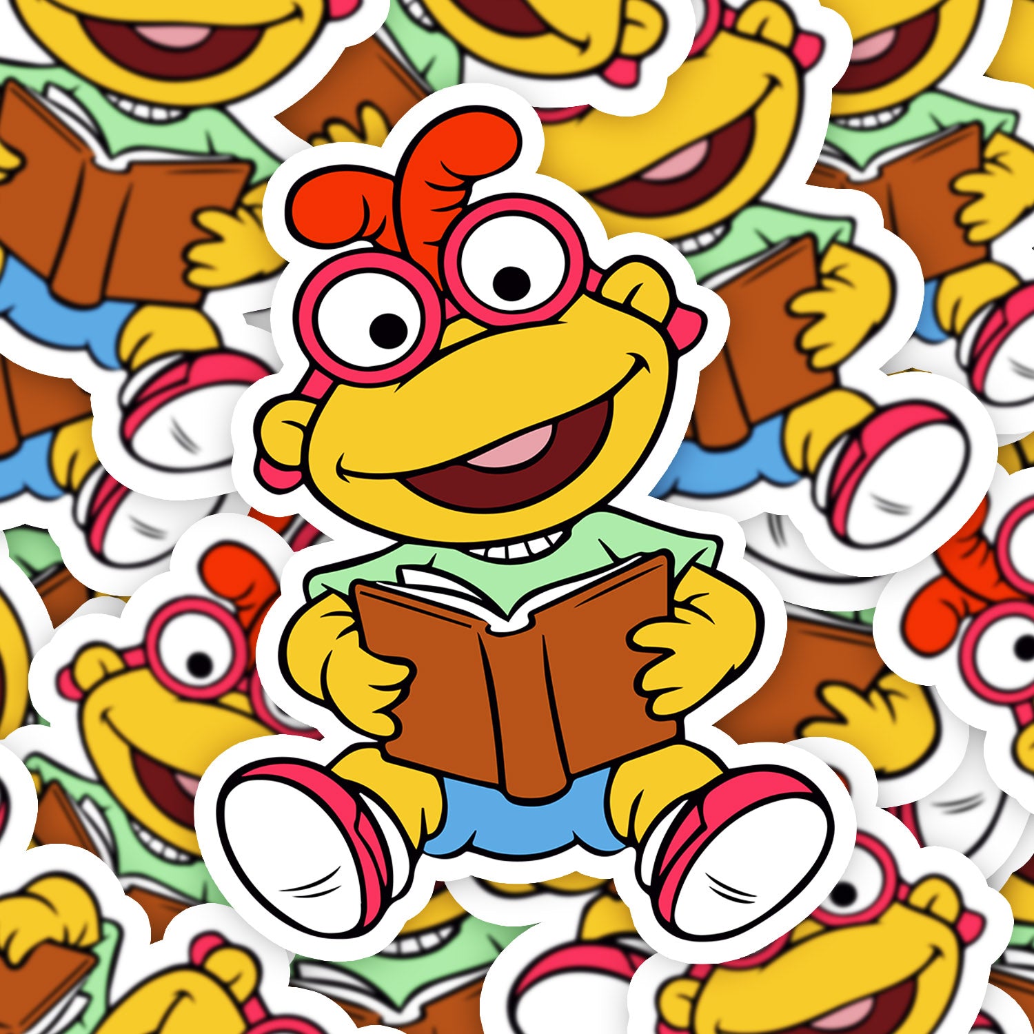 Set 5 bucati, Sticker decorativ, Muppet Baby Scooter citeste, Rezistent la apa, NO12872, 6 cm, Multicolor
