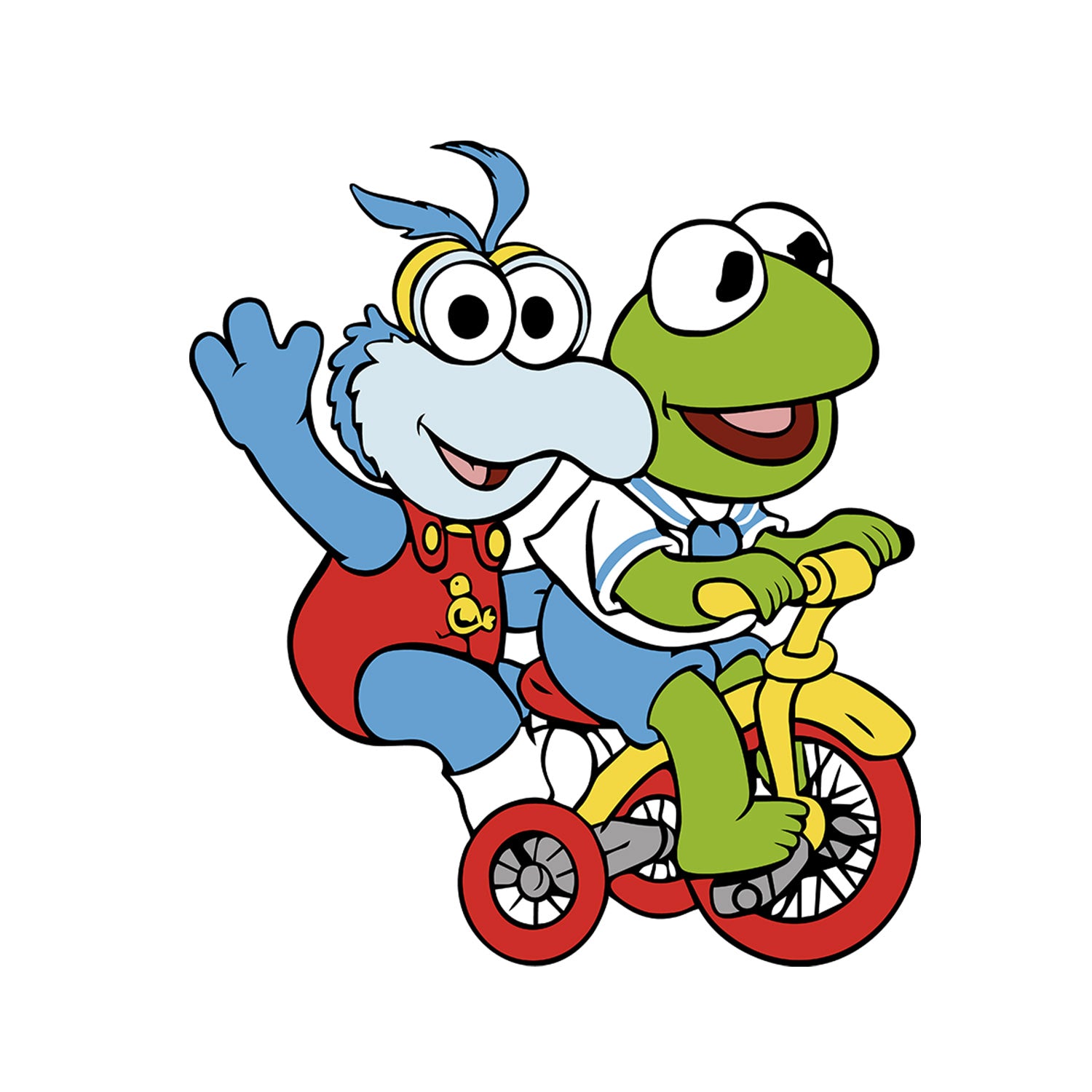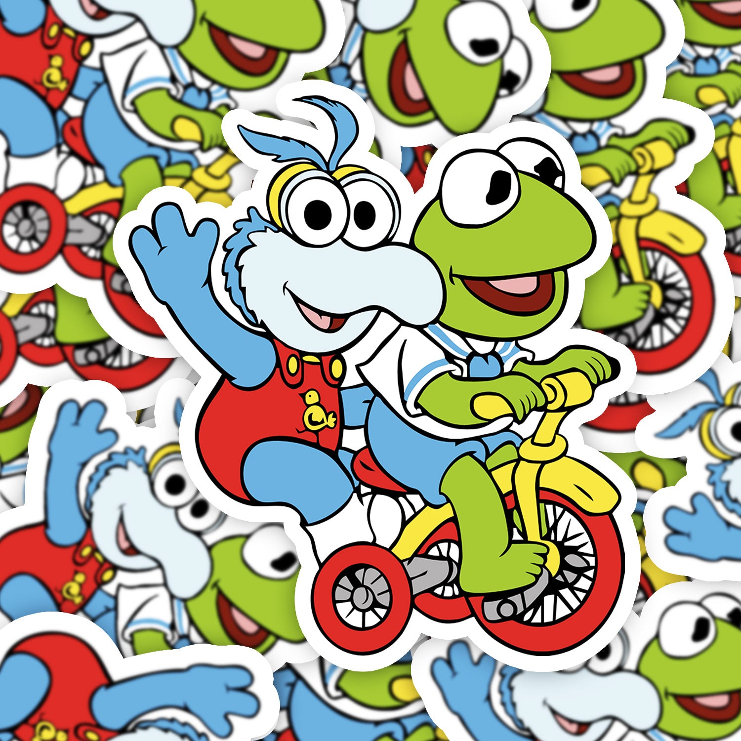 Set 5 bucati, Sticker decorativ, Muppet Piggy si Kermit copii pe bicicleta, Rezistent la apa, NO11114, 6 cm, Multicolor