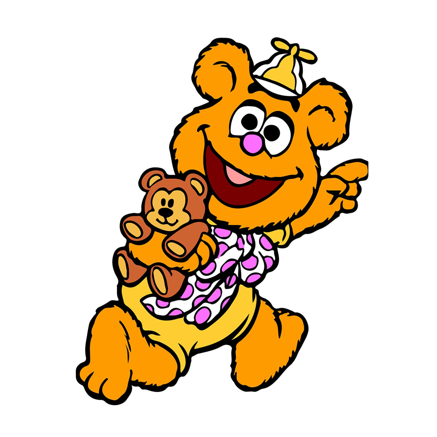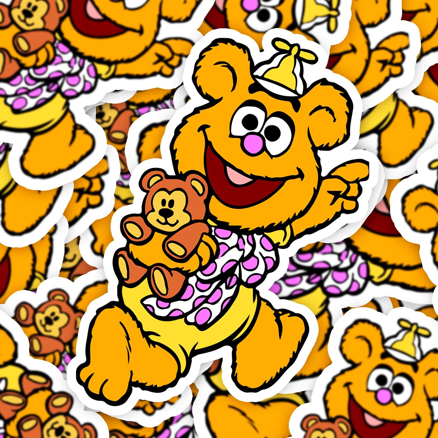 Set 5 bucati, Sticker decorativ, Muppets Fozzie Bear cu ursuletul de plus, Rezistent la apa, NO13325, 6 cm, Multicolor