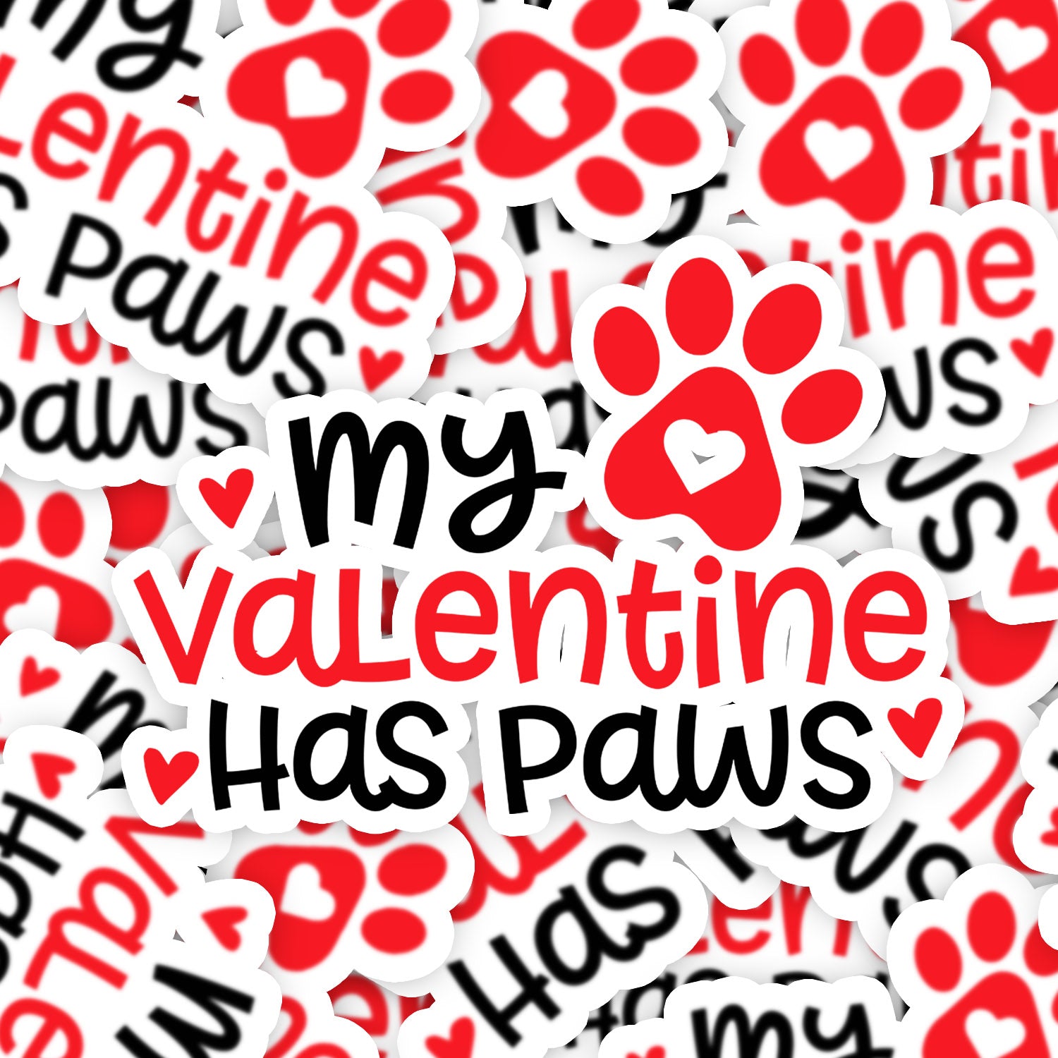 Set 5 bucati, Sticker decorativ, My Valentine has paws, Rezistent la apa, NO15033, 6 cm, Multicolor