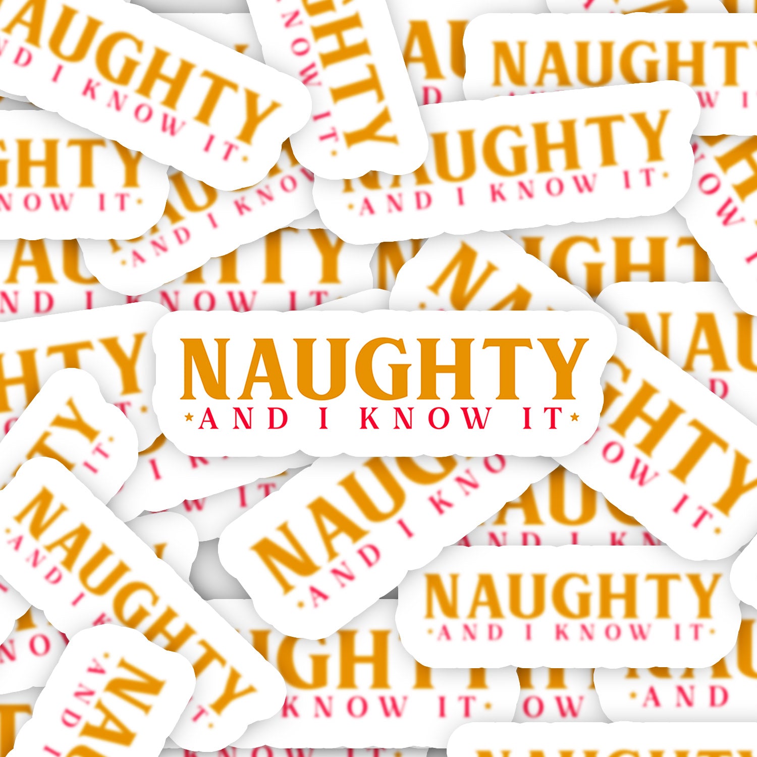 Set 5 bucati, Sticker decorativ, Naughty and i know it, Rezistent la apa, NO14720, 6 cm, Multicolor