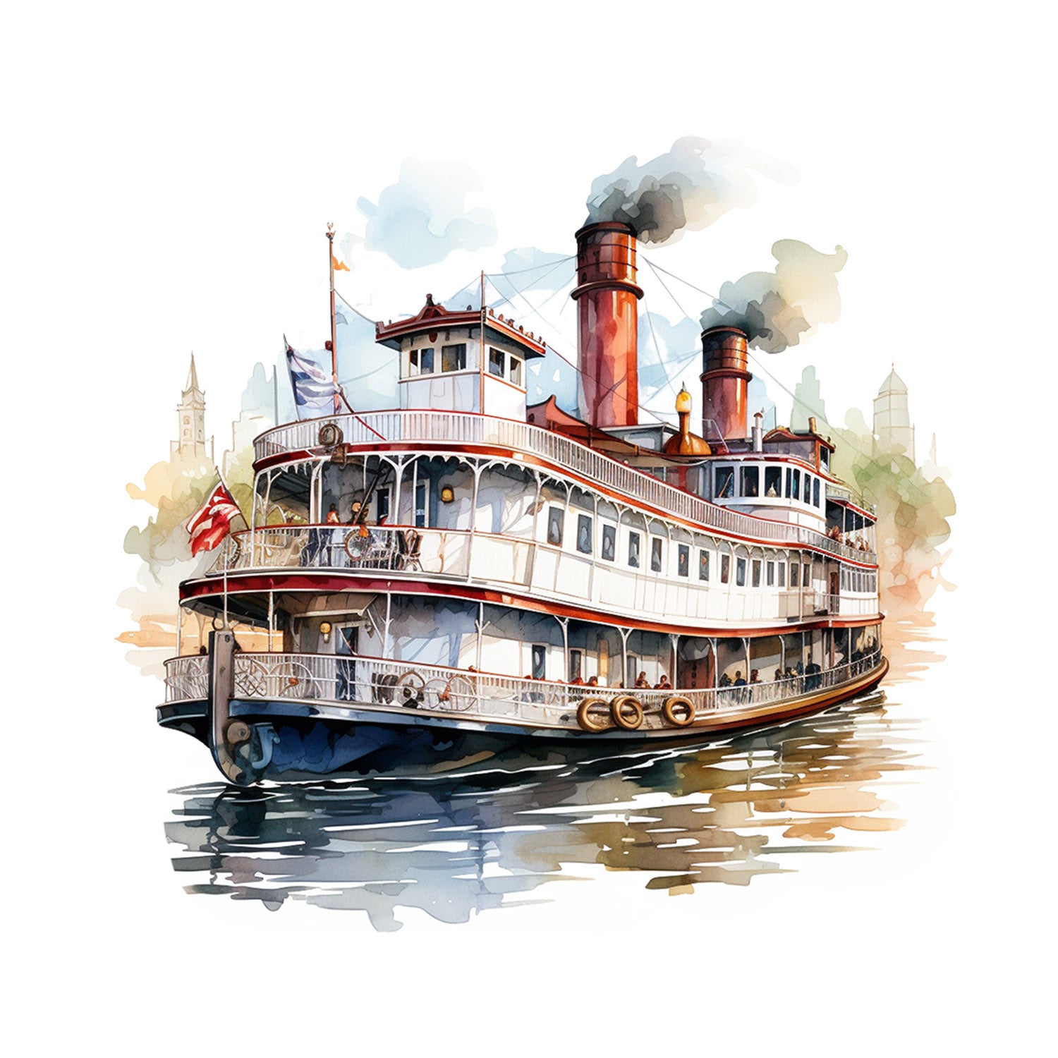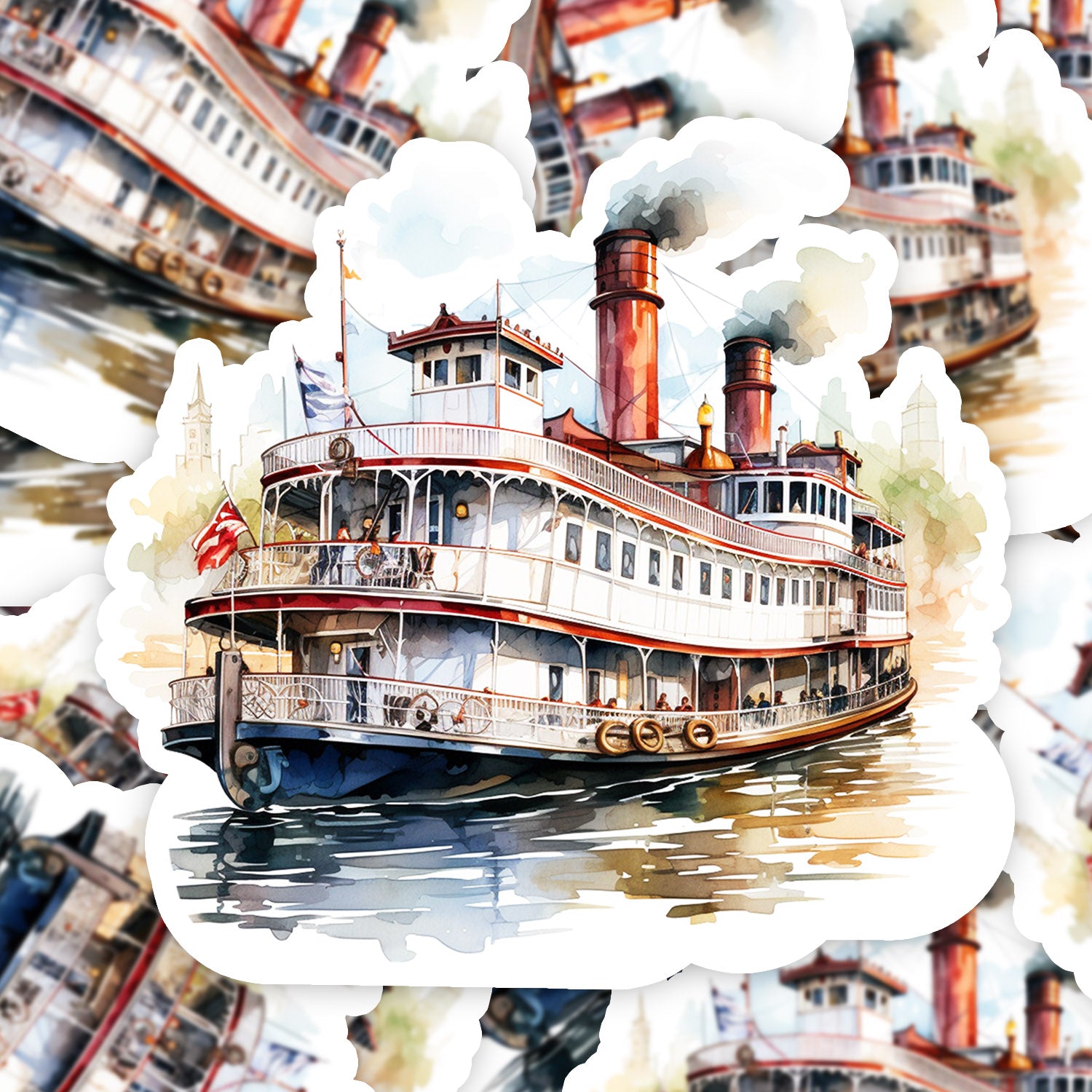 Set 5 bucati, Sticker decorativ, Nava cu aburi alba, Rezistent la apa, NO13752, 6 cm, Multicolor