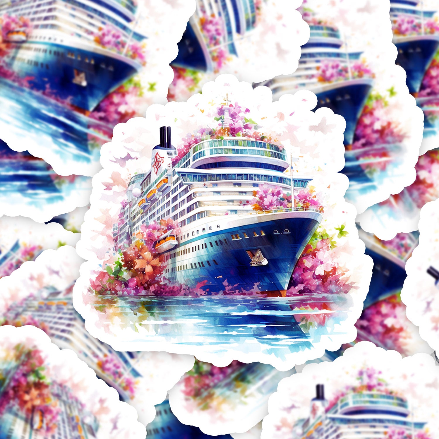 Set 5 bucati, Sticker decorativ, Nava de croaziera Bismark, Rezistent la apa, NO11390, 6 cm, Multicolor