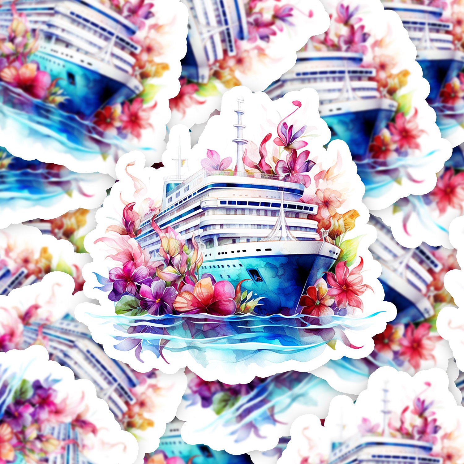 Set 5 bucati, Sticker decorativ, Nava de croaziera Frisia, Rezistent la apa, NO13966, 6 cm, Multicolor