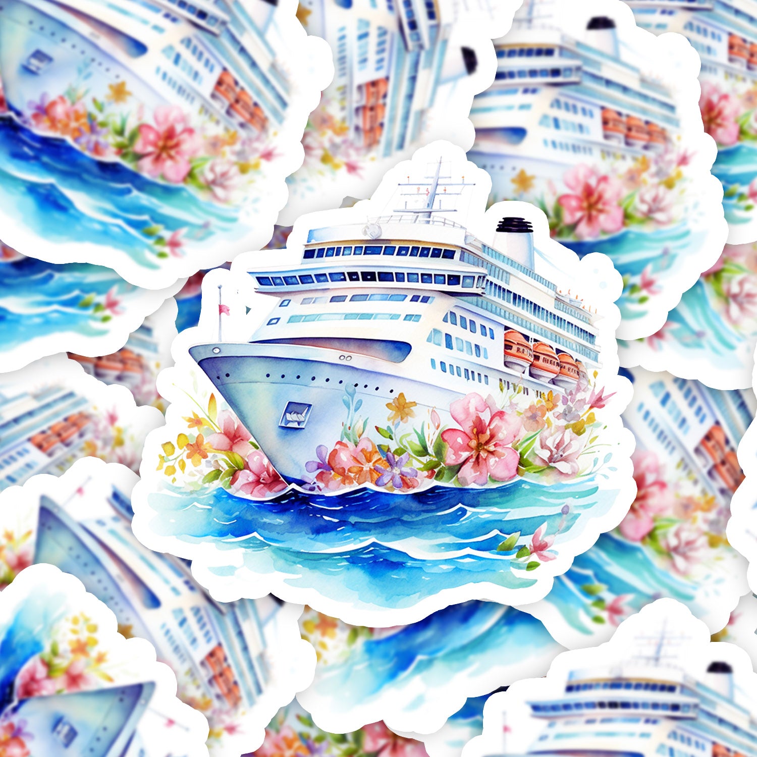 Set 5 bucati, Sticker decorativ, Nava de croaziera Lusitania, Rezistent la apa, NO13425, 6 cm, Multicolor