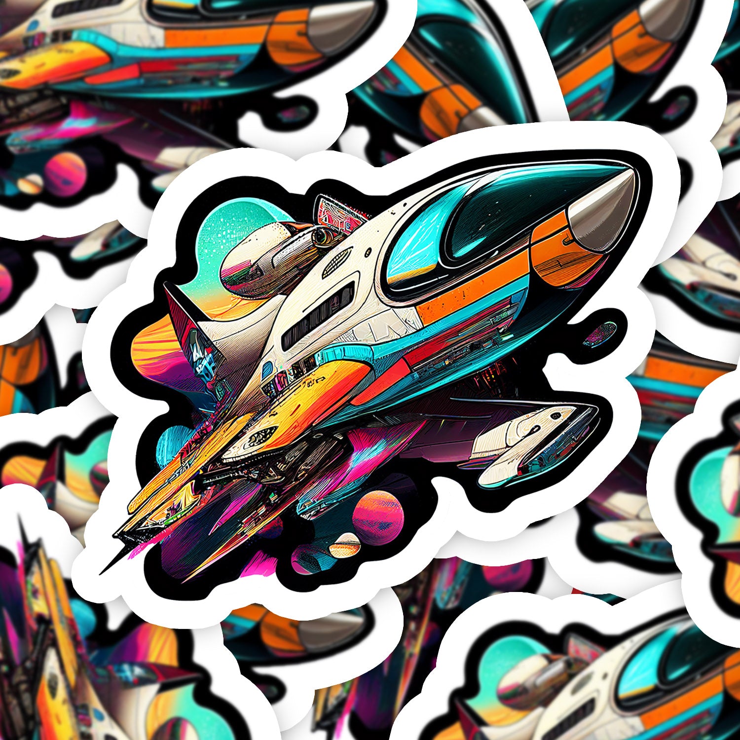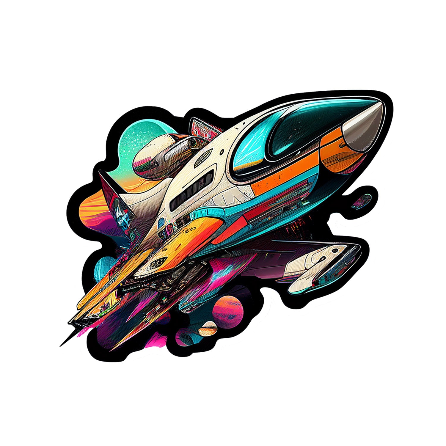 Set 5 bucati, Sticker decorativ, Nava spatiala Titus, Rezistent la apa, NO10814, 6 cm, Multicolor
