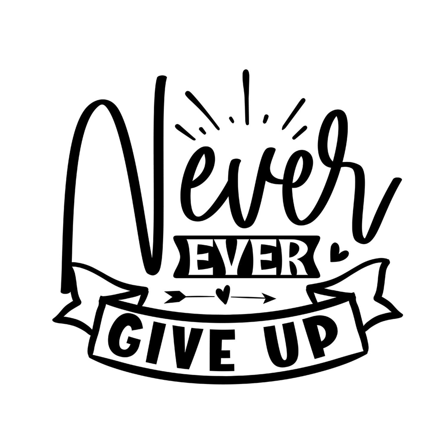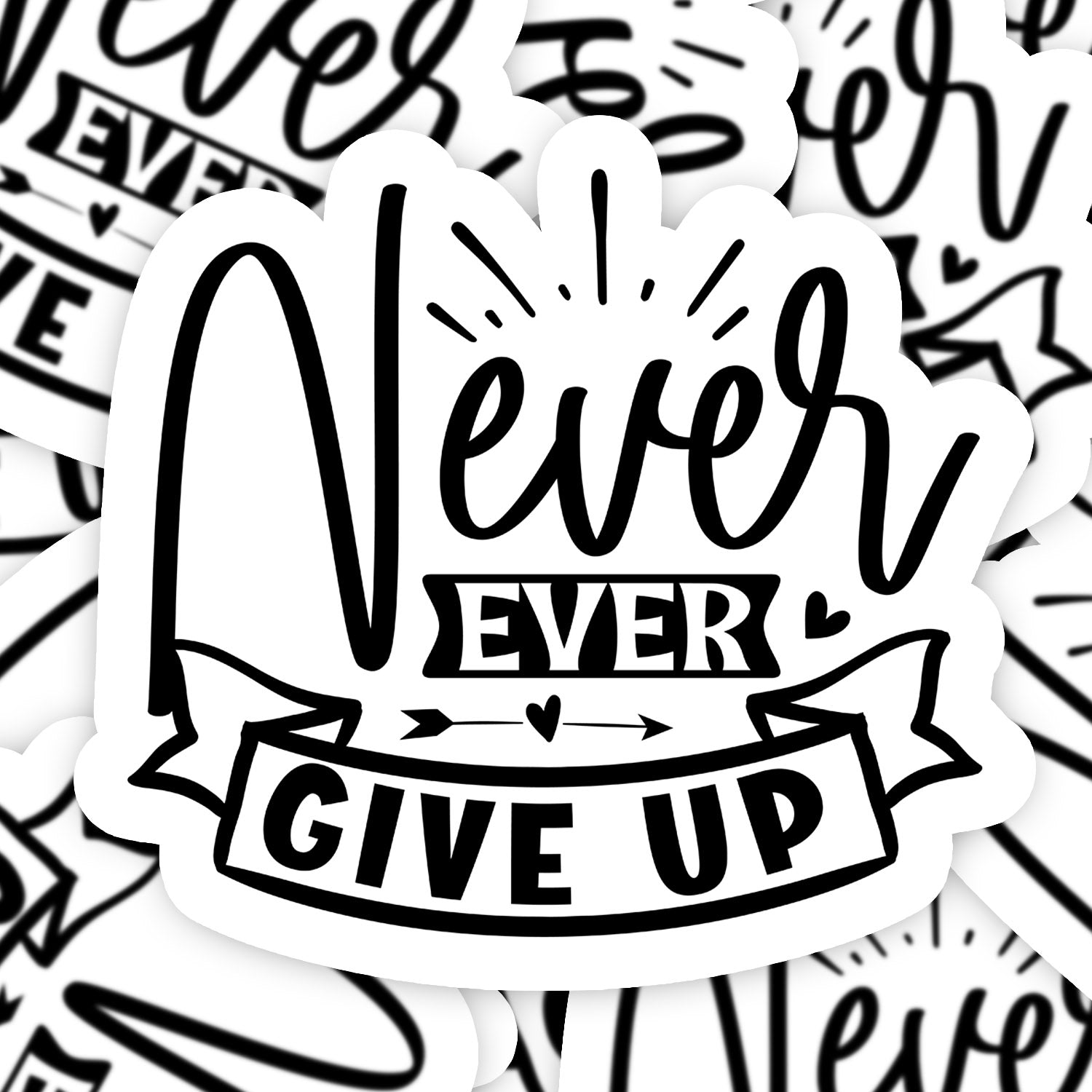 Set 5 bucati, Sticker decorativ, Never ever give up, Rezistent la apa, NO14404, 6 cm, Multicolor