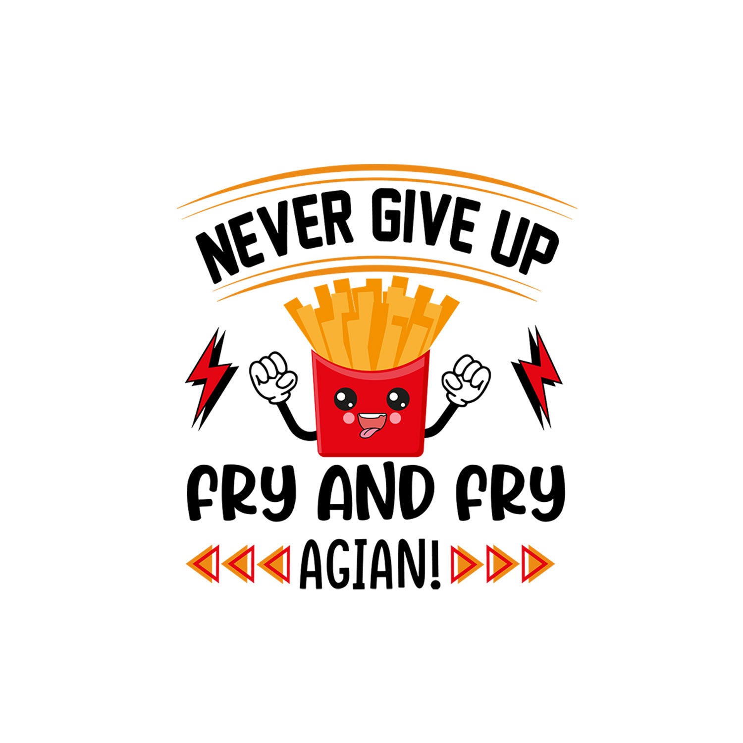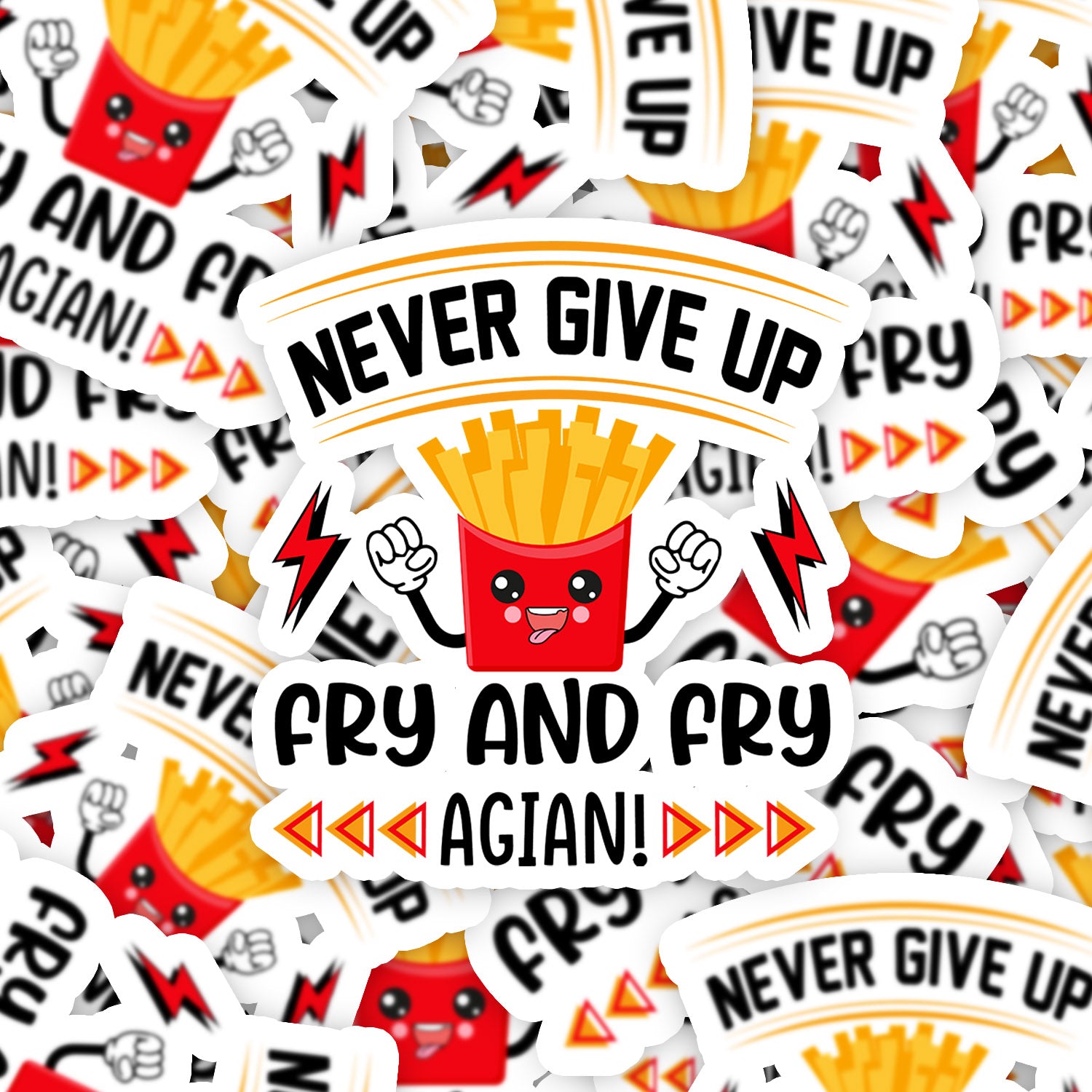 Set 5 bucati, Sticker decorativ, Never give up Fry and fry again, Rezistent la apa, NO14430, 6 cm, Multicolor