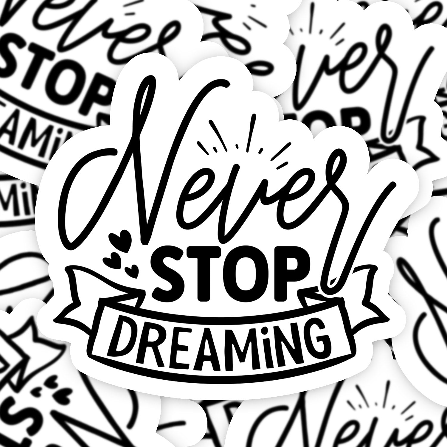 Set 5 bucati, Sticker decorativ, Never stop dreaming, Rezistent la apa, NO10053, 6 cm, Multicolor