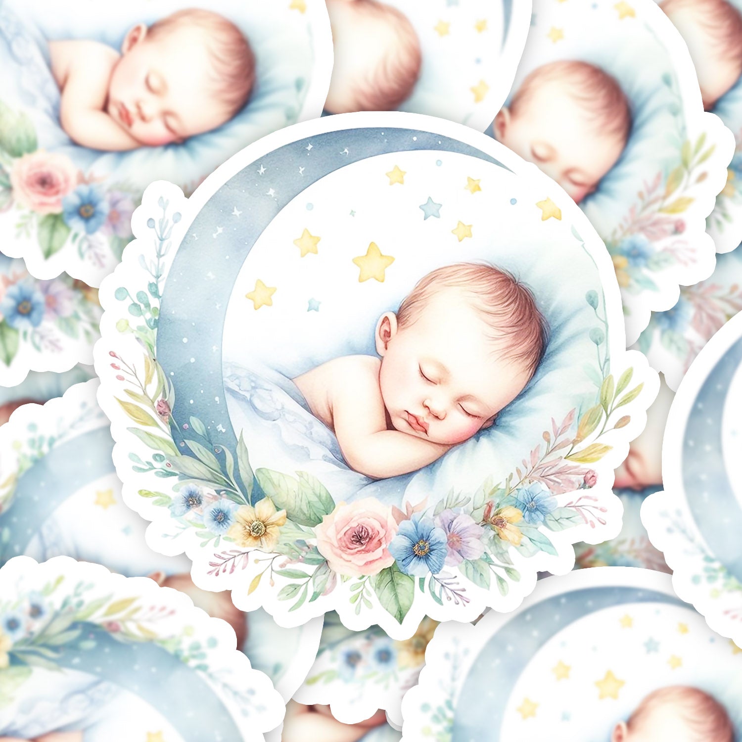 Set 5 bucati, Sticker decorativ, Noapte buna Aurelio, Rezistent la apa, NO11216, 6 cm, Multicolor