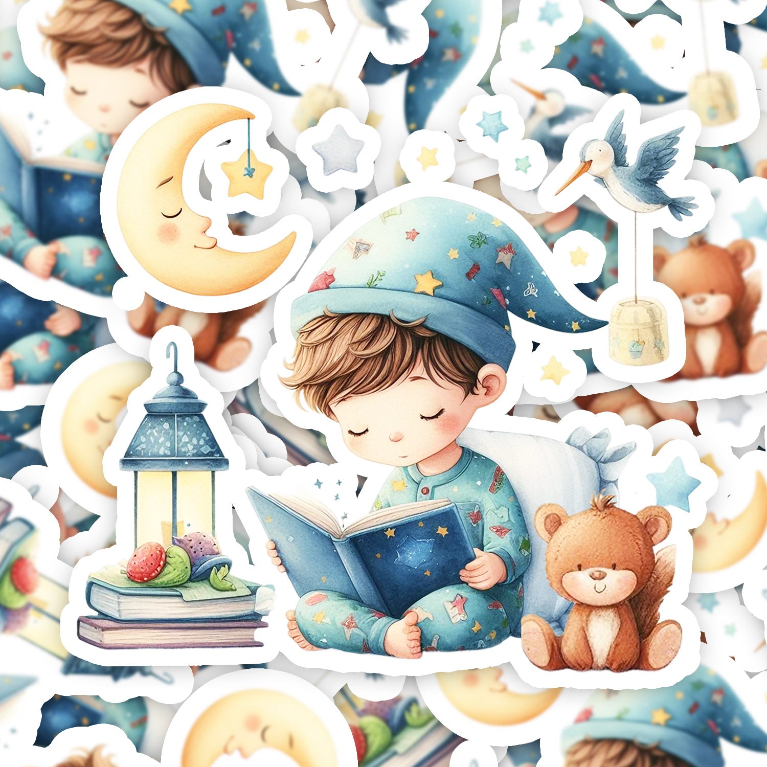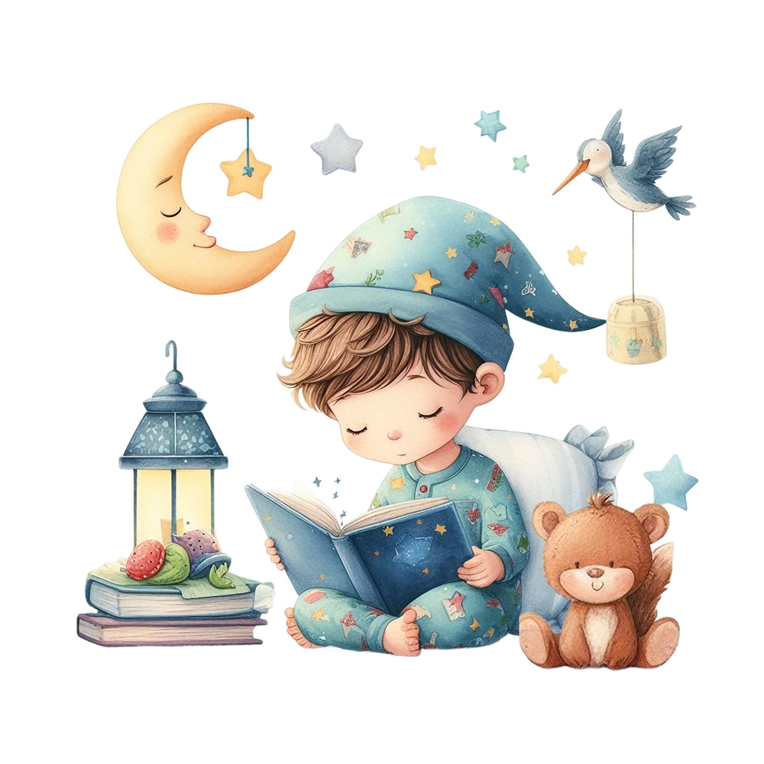 Set 5 bucati, Sticker decorativ, Noapte buna Calin, Rezistent la apa, NO16496, 6 cm, Multicolor