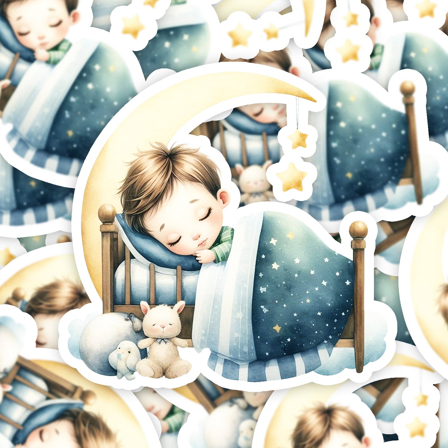 Set 5 bucati, Sticker decorativ, Noapte buna Denis, Rezistent la apa, NO13580, 6 cm, Multicolor
