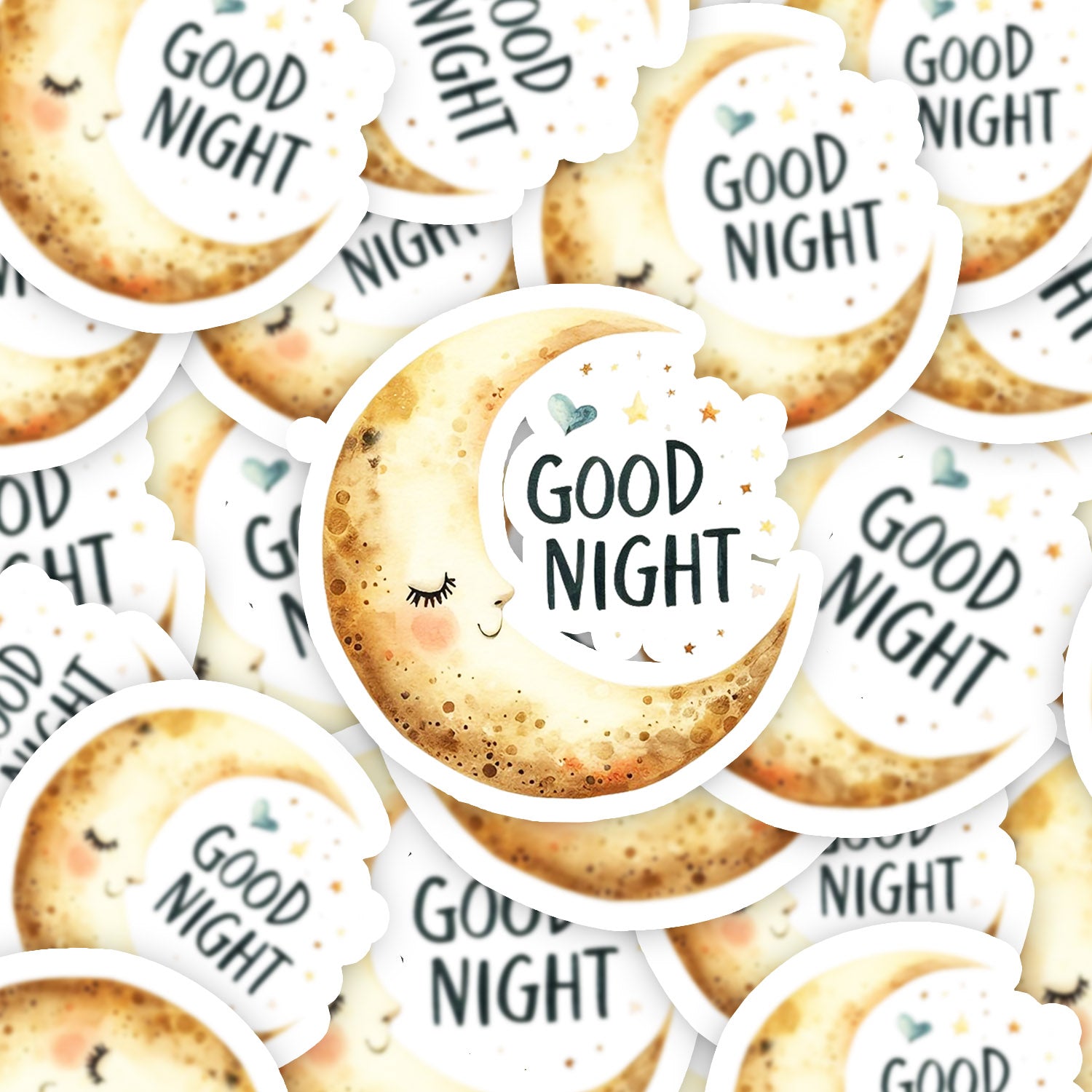 Set 5 bucati, Sticker decorativ, Noapte buna Good Night, Rezistent la apa, NO14658, 6 cm, Multicolor