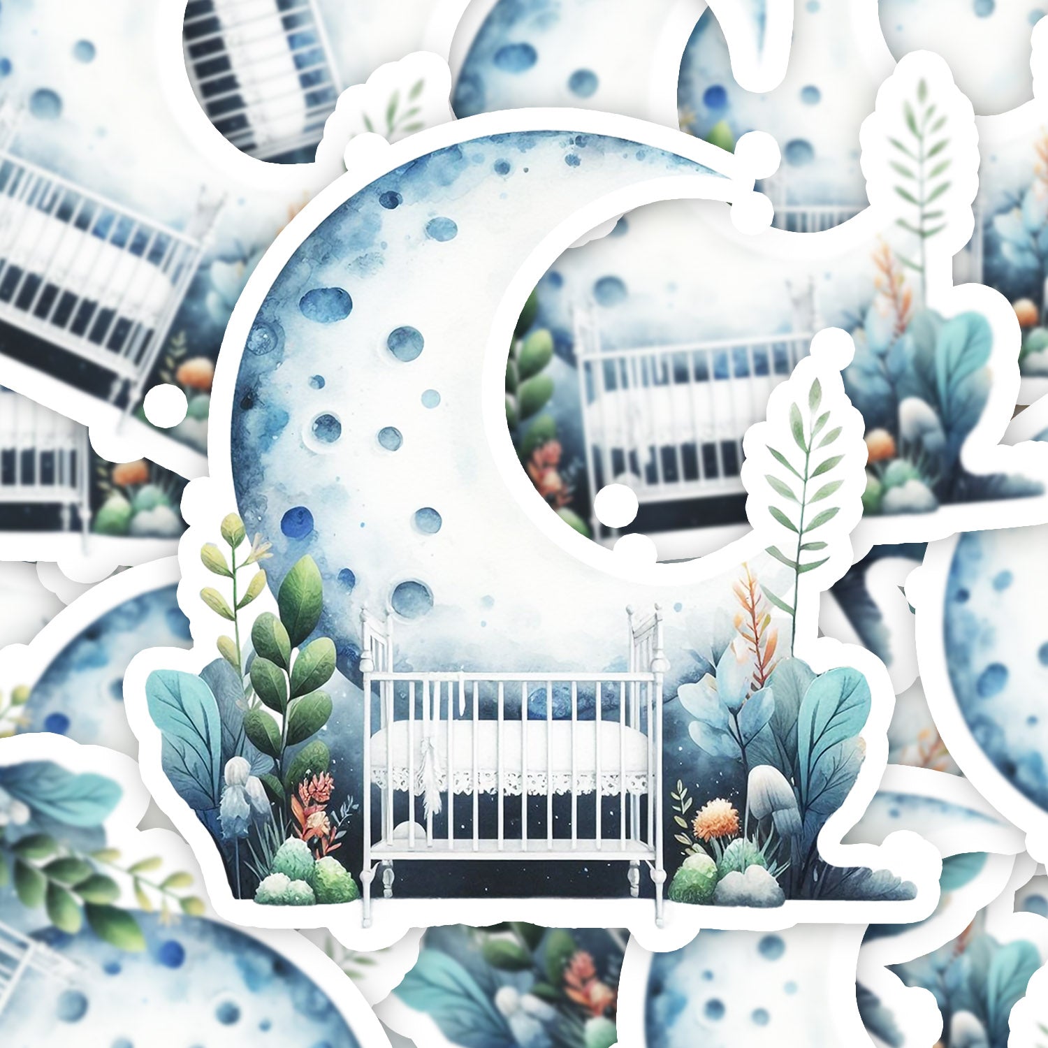 Set 5 bucati, Sticker decorativ, Noapte buna luna, Rezistent la apa, NO11984, 6 cm, Multicolor