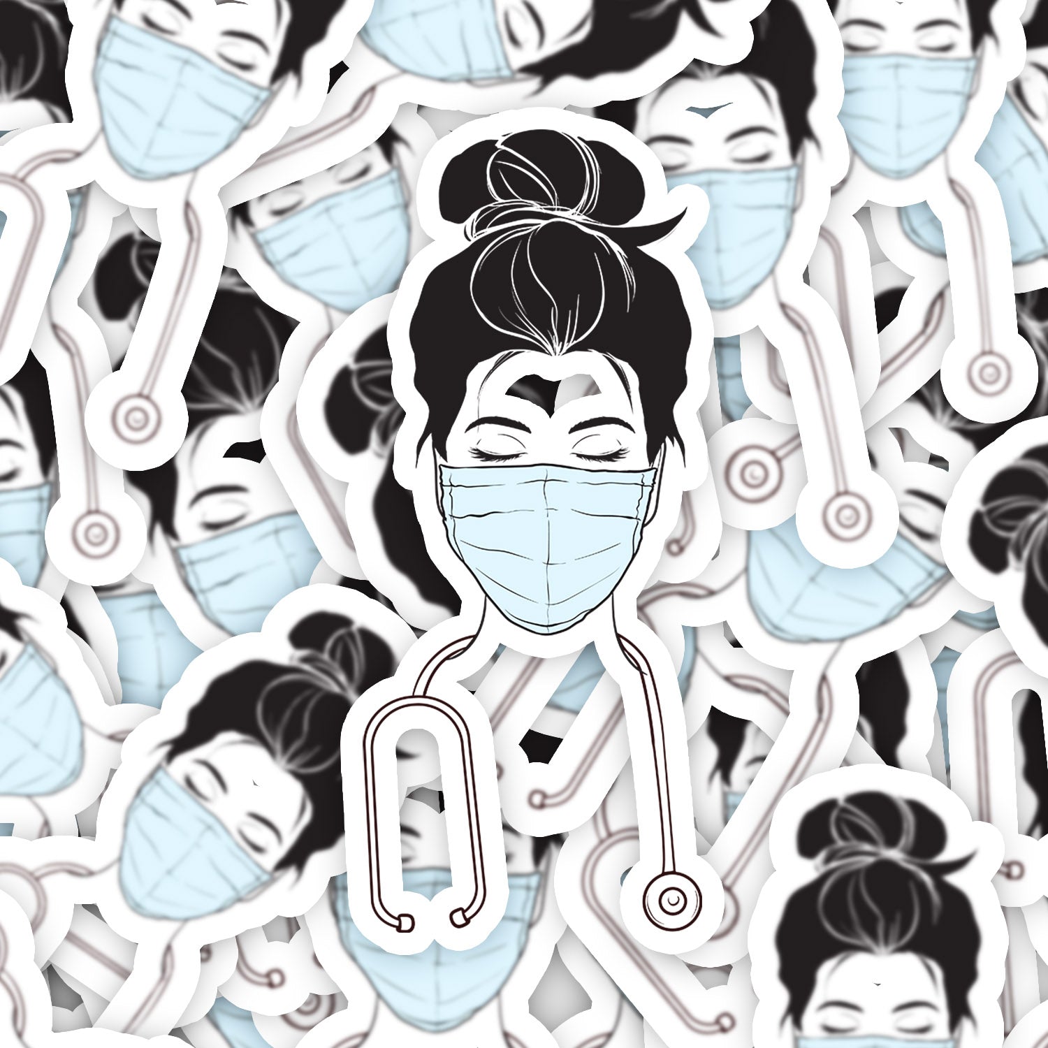 Set 5 bucati, Sticker decorativ, Nurse asistent medical, Rezistent la apa, NO13036, 6 cm, Multicolor