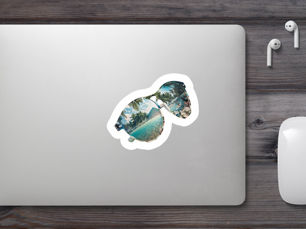 Set 5 bucati, Sticker decorativ, Ochelari de soare cu peisaj exotic, Rezistent la apa, NO8271, 6 cm, Multicolor