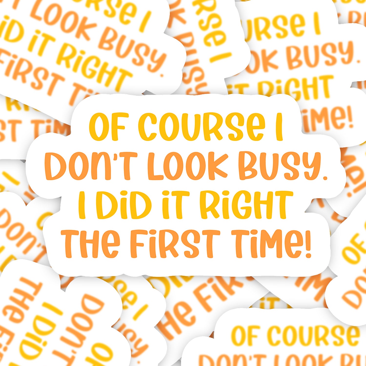 Set 5 bucati, Sticker decorativ, Of course i dont look busy I did it right the first time, Rezistent la apa, NO13850, 6 cm, Multicolor