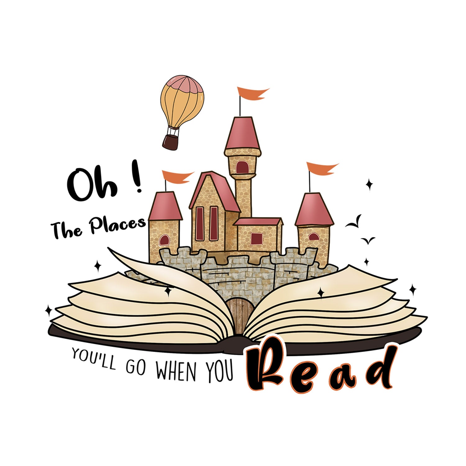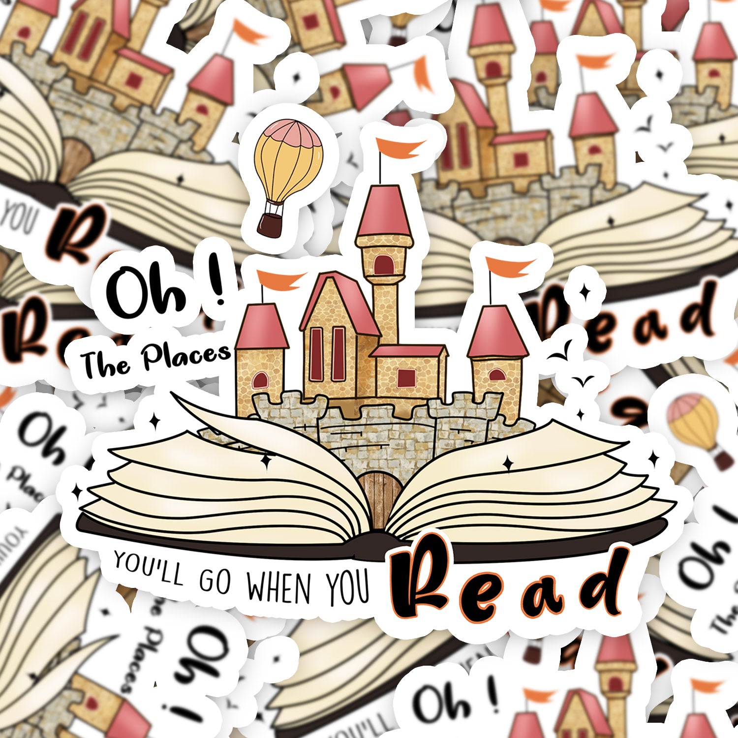 Set 5 bucati, Sticker decorativ, Oh The Places You ll go when you read, Rezistent la apa, NO16105, 6 cm, Multicolor