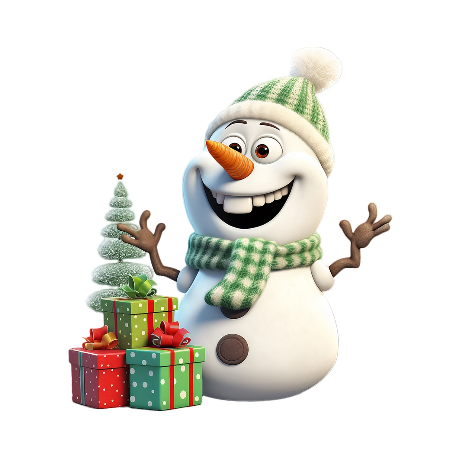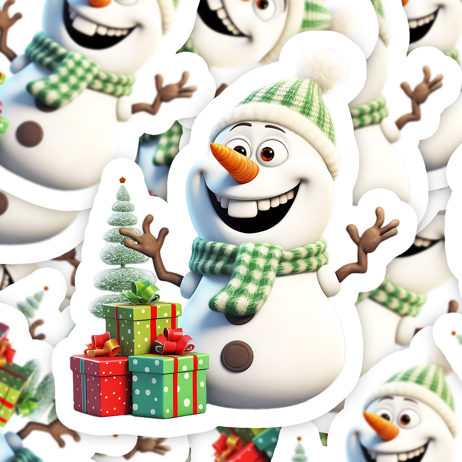 Set 5 bucati, Sticker decorativ, Olaf cu cadouri de craciun, Rezistent la apa, NO15214, 6 cm, Multicolor