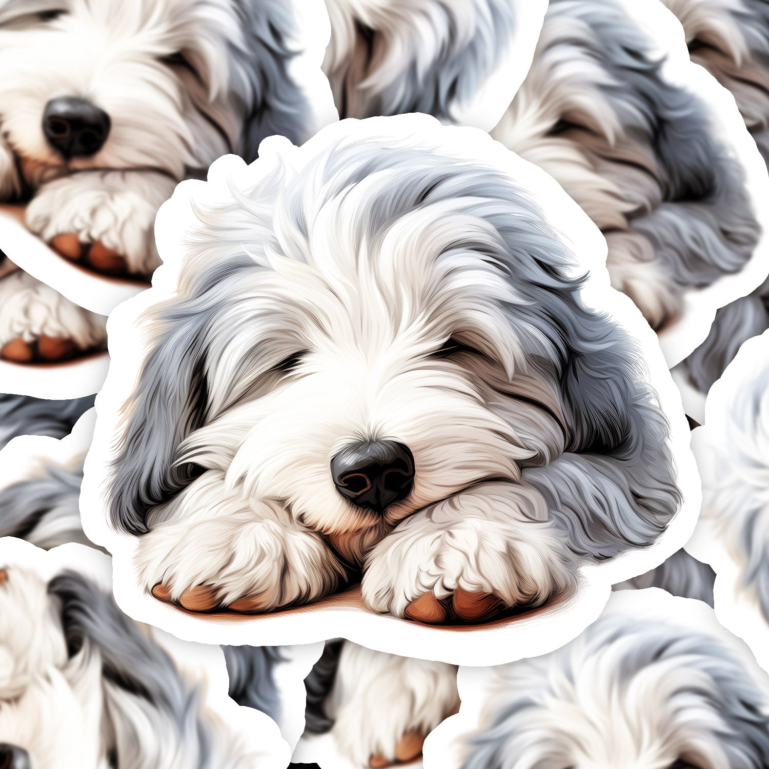 Set 5 bucati, Sticker decorativ, Old English Sheepdog, Rezistent la apa, NO13222, 6 cm, Multicolor