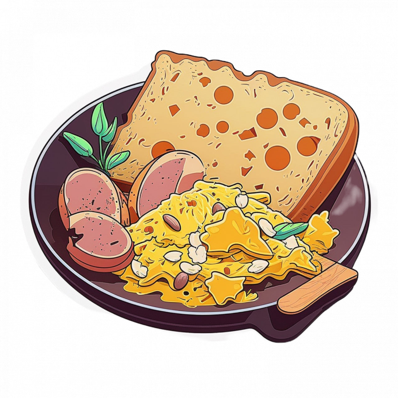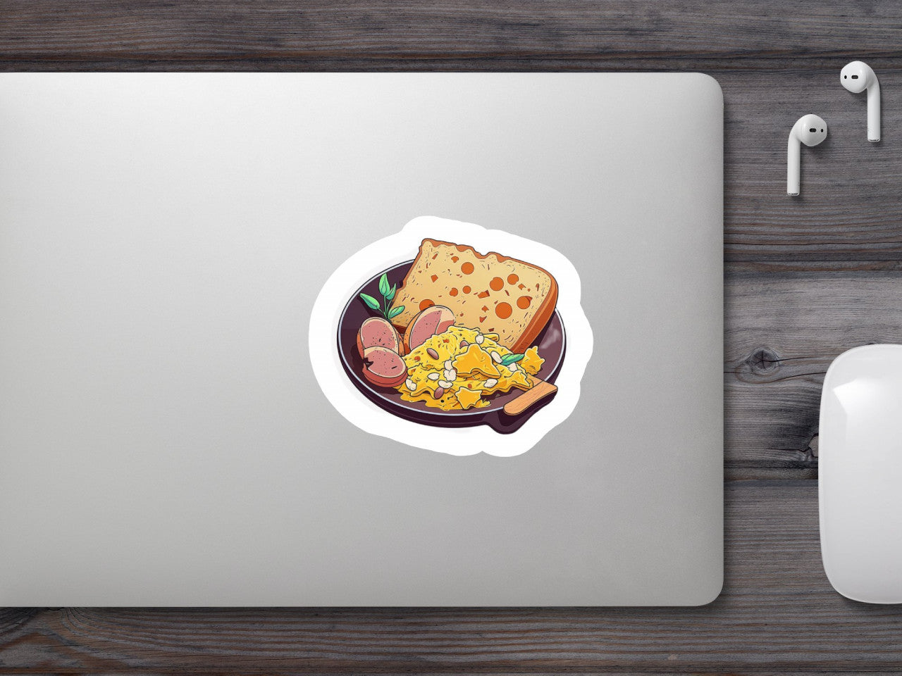 Set 5 bucati, Sticker decorativ, Omleta cu paine prajita, Rezistent la apa, NO8282, 6 cm, Multicolor