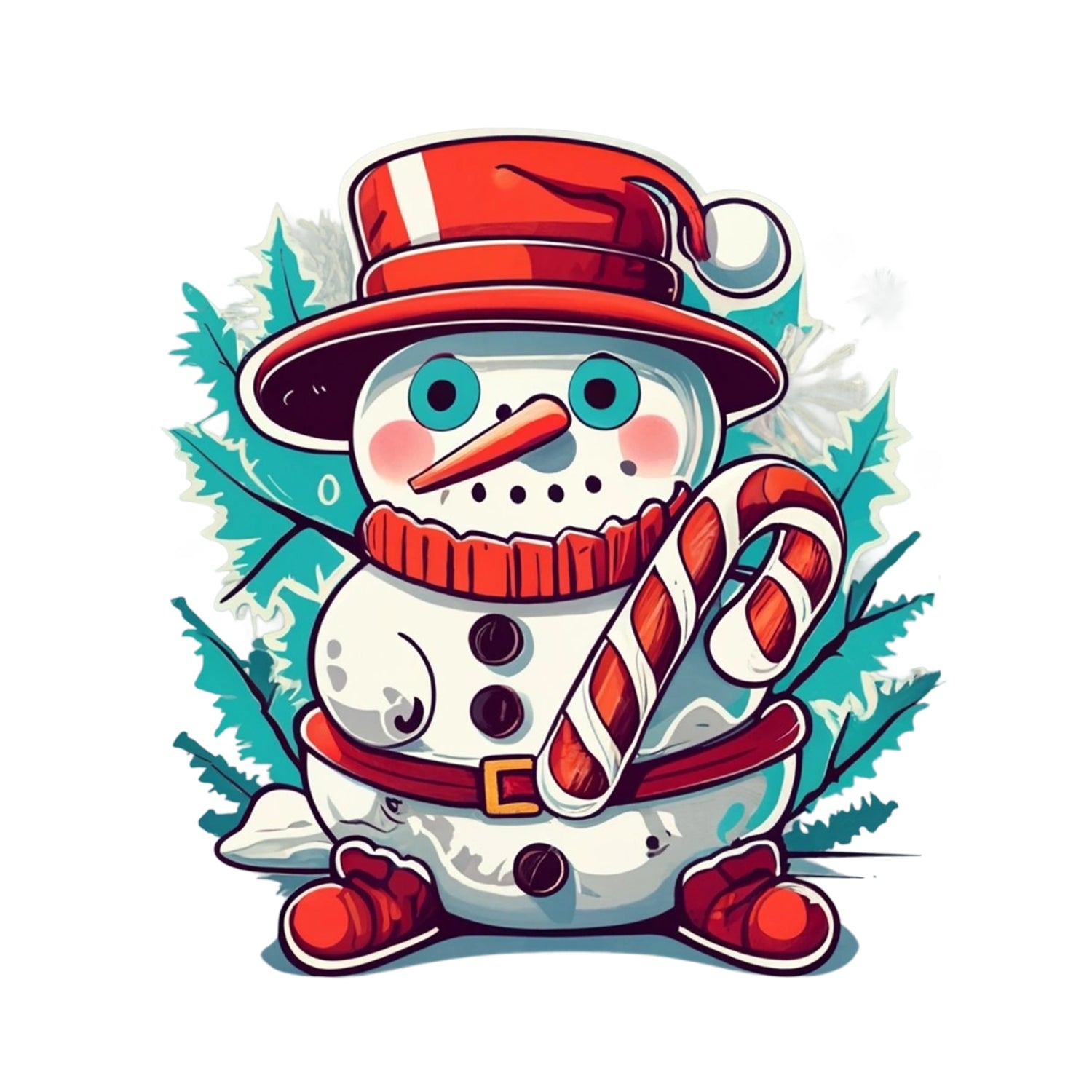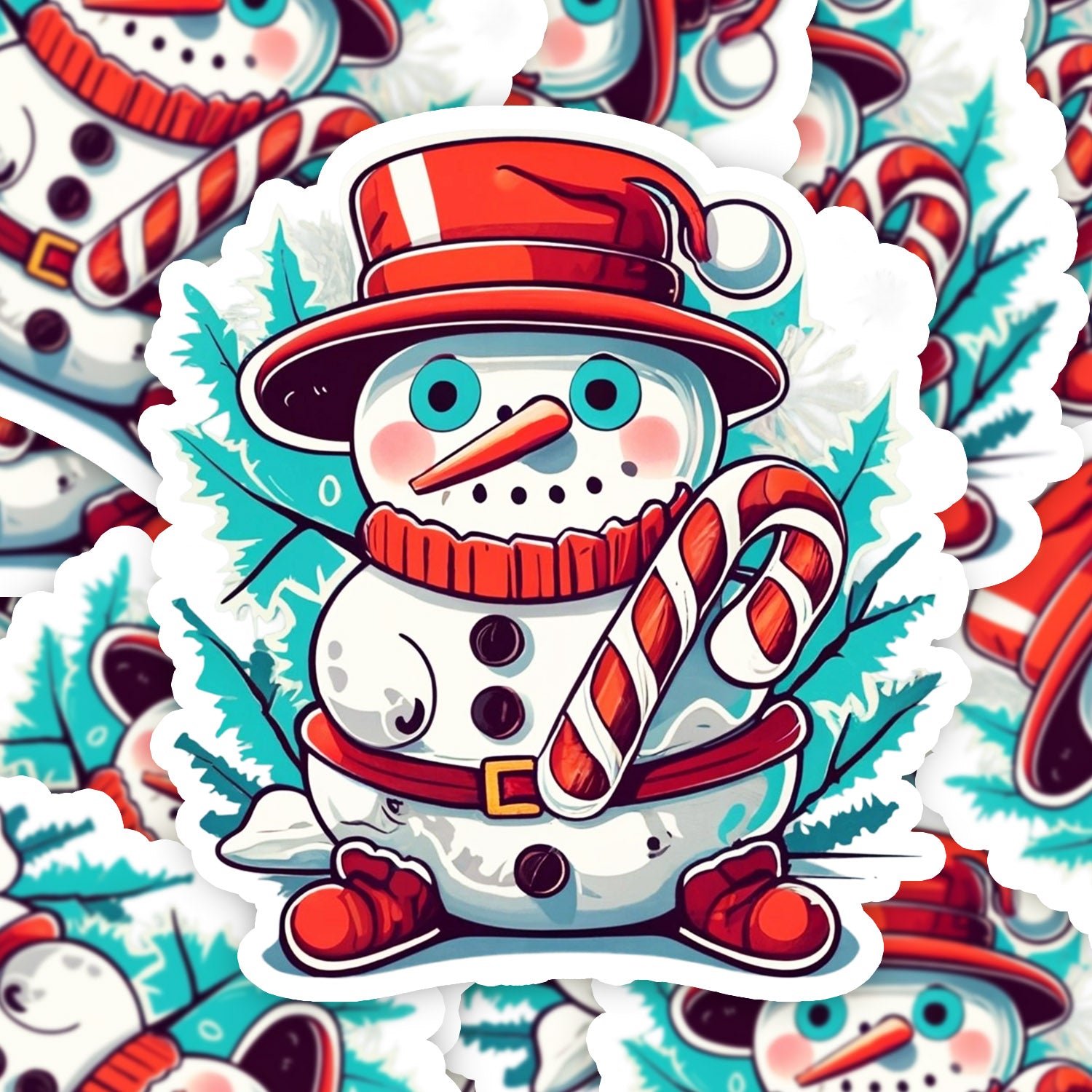 Set 5 bucati, Sticker decorativ, Omul de zapada cu acadea, Rezistent la apa, NO10248, 6 cm, Multicolor