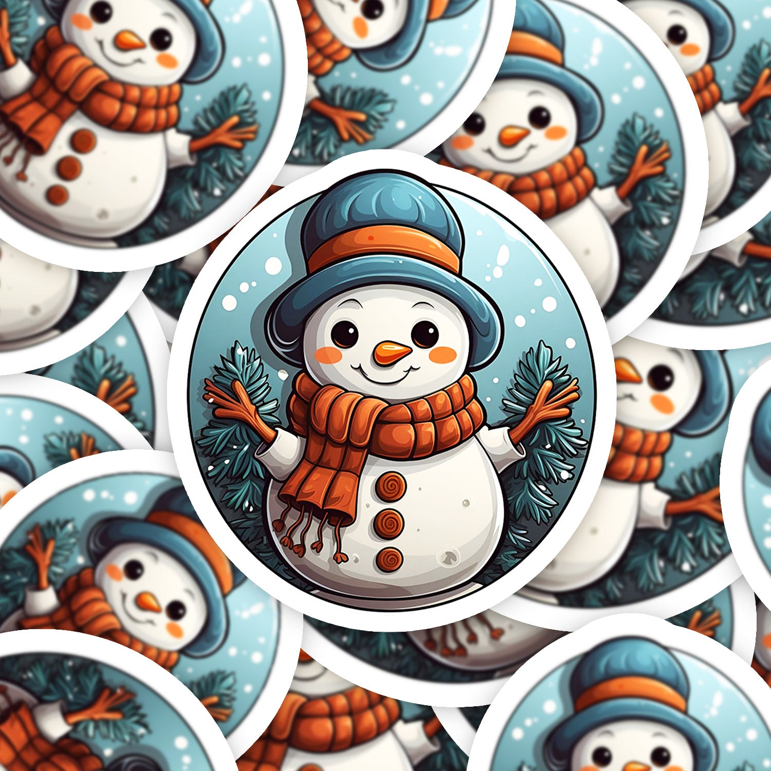 Set 5 bucati, Sticker decorativ, Omul de zapada cu caciula albastra, Rezistent la apa, NO10109, 6 cm, Multicolor