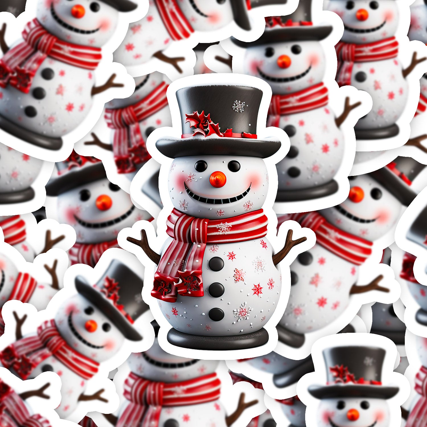 Set 5 bucati, Sticker decorativ, Omul de zapada cu joben negru, Rezistent la apa, NO10816, 6 cm, Multicolor