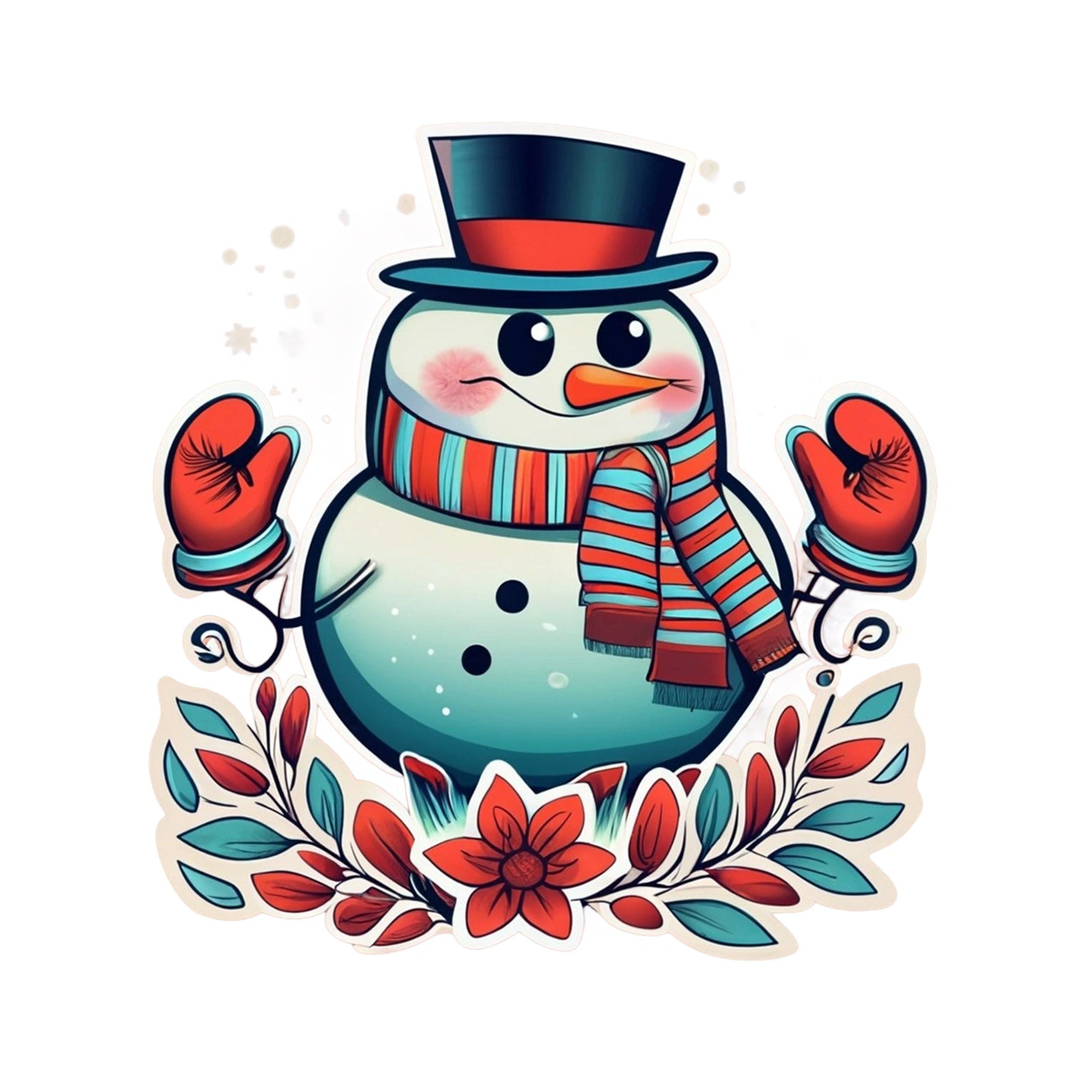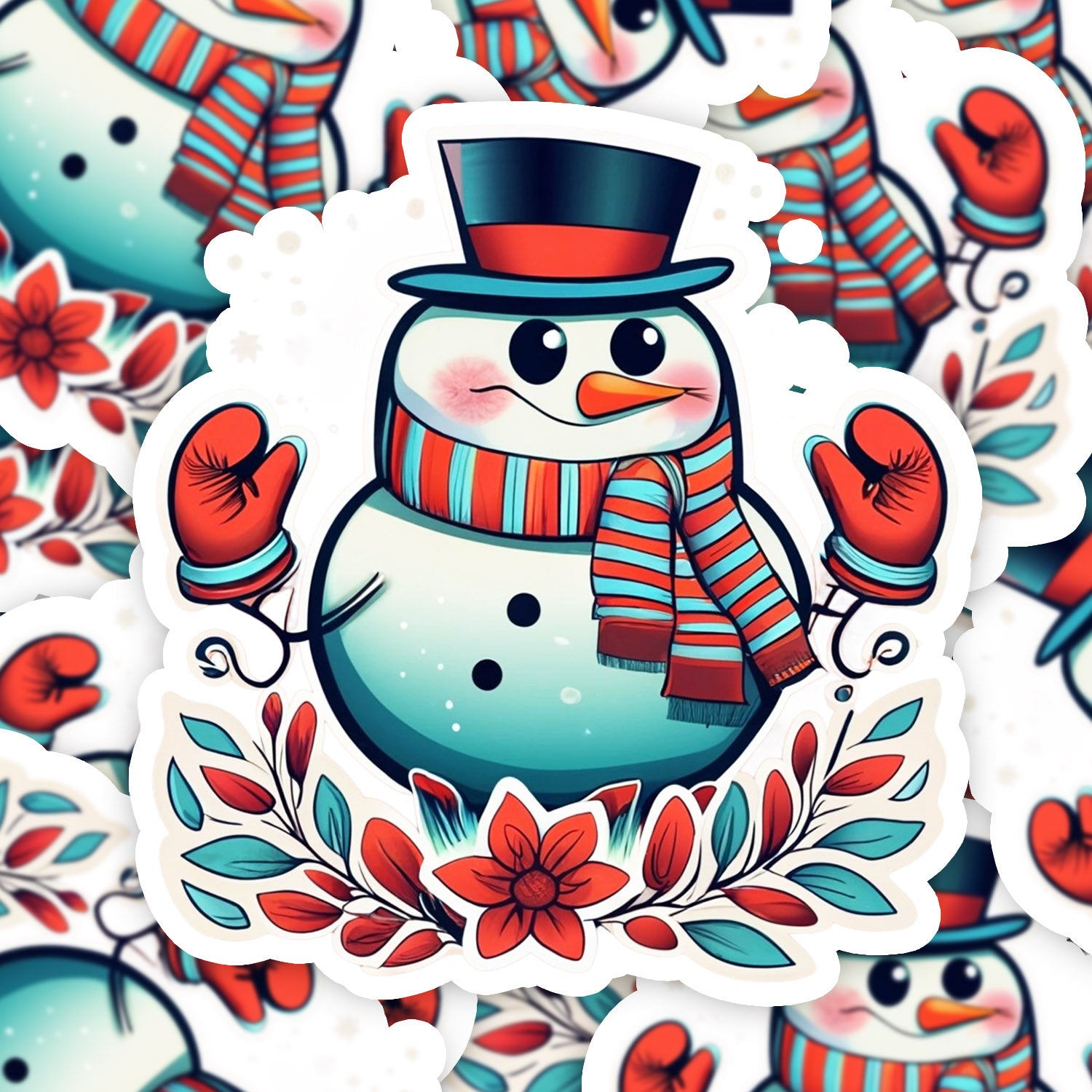 Set 5 bucati, Sticker decorativ, Omul de zapada cu manusi de box, Rezistent la apa, NO16212, 6 cm, Multicolor