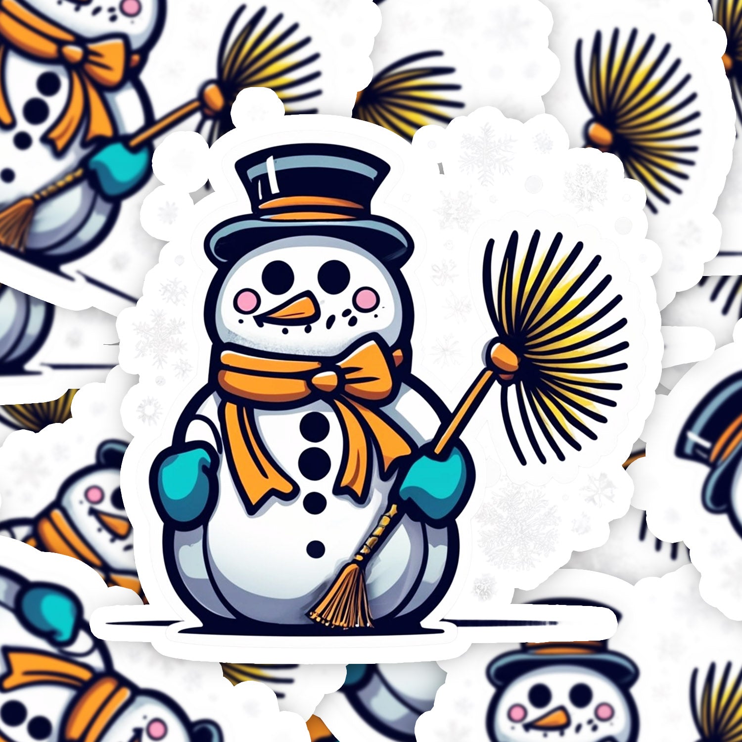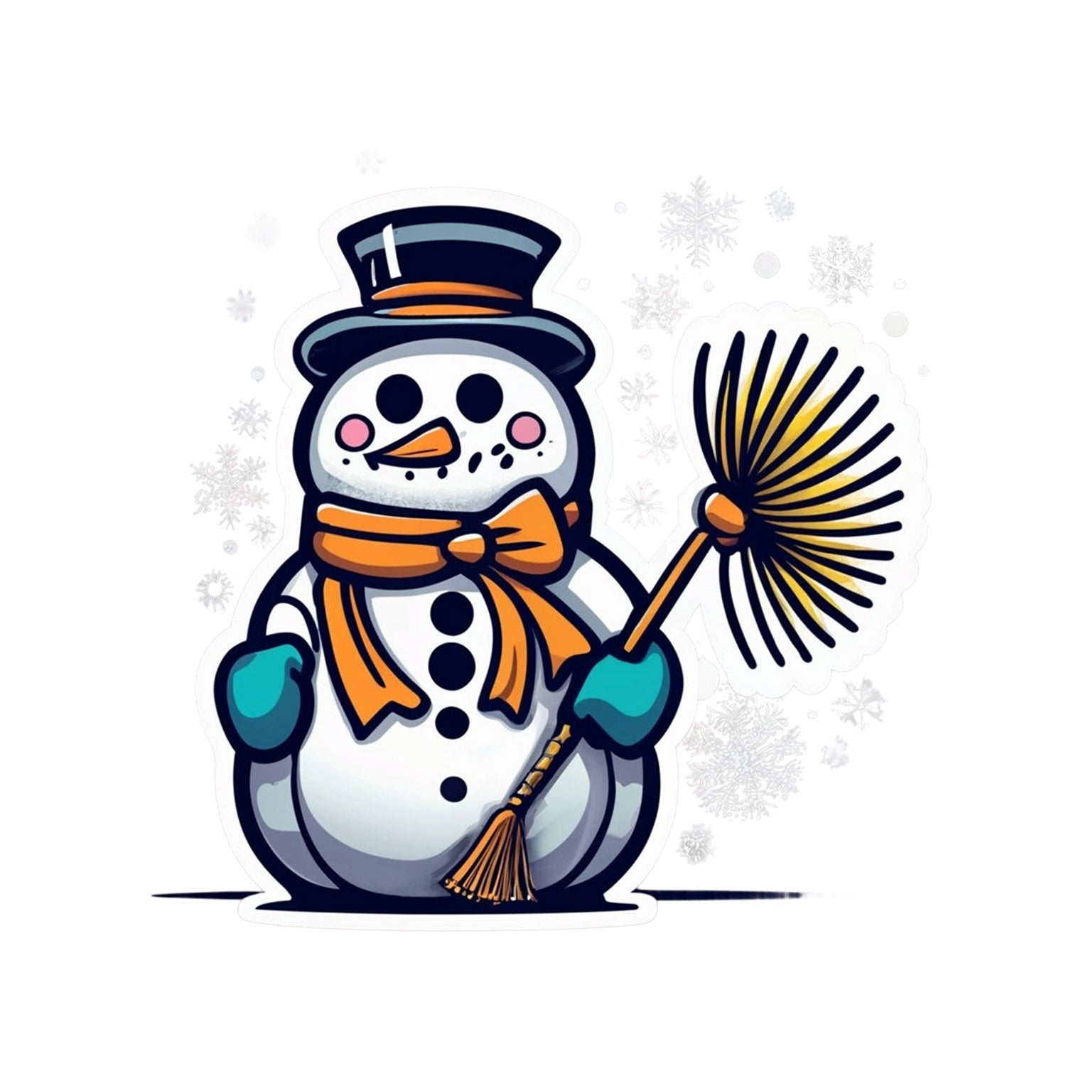 Set 5 bucati, Sticker decorativ, Omul de zapada cu matura, Rezistent la apa, NO11062, 6 cm, Multicolor
