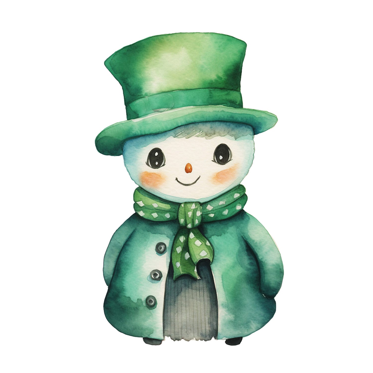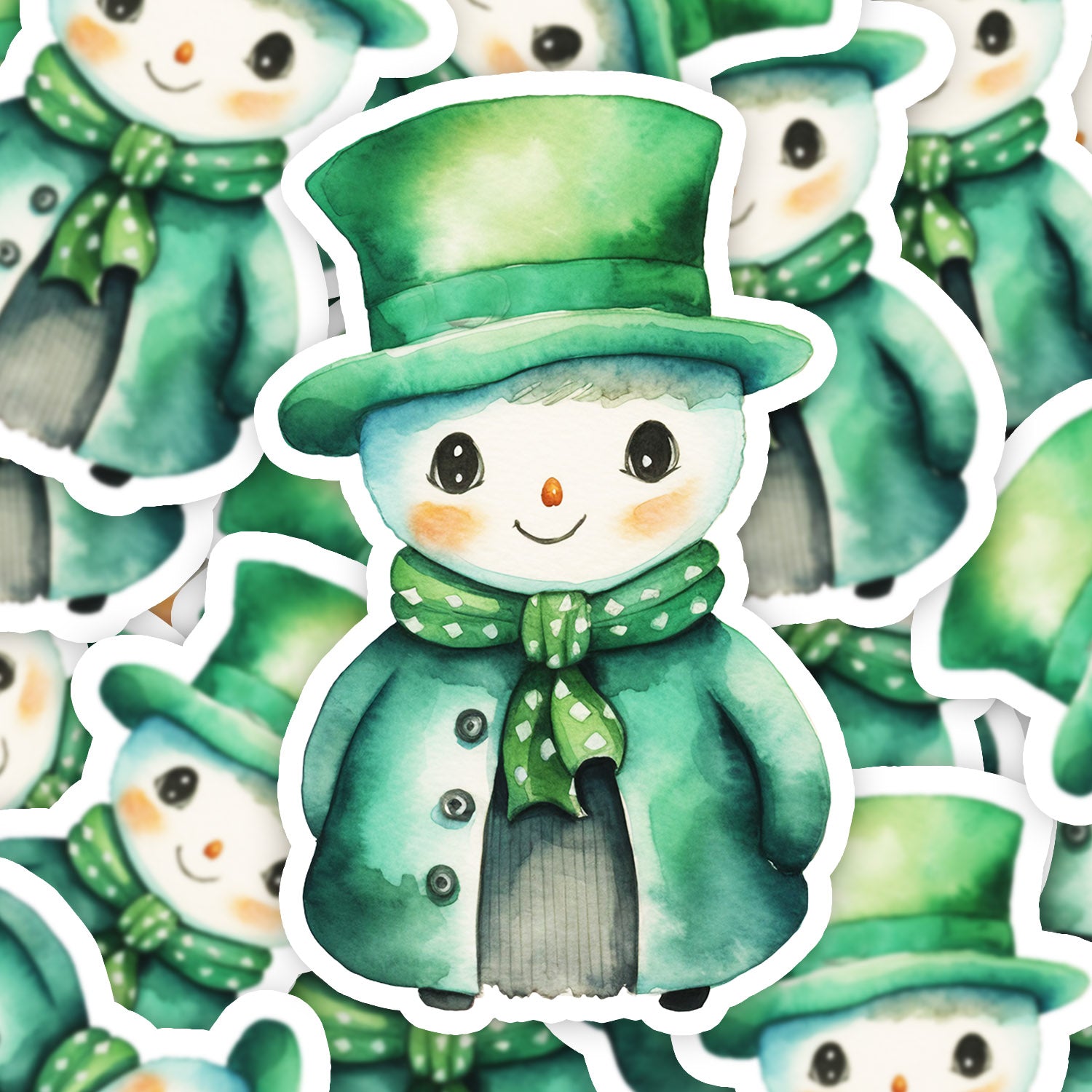 Set 5 bucati, Sticker decorativ, Omul de zapada cu palarie verde, Rezistent la apa, NO16491, 6 cm, Multicolor
